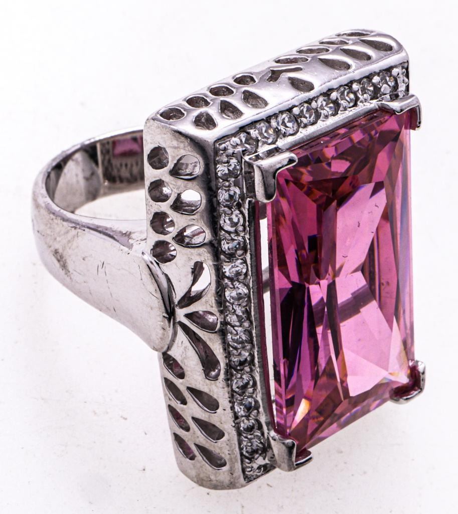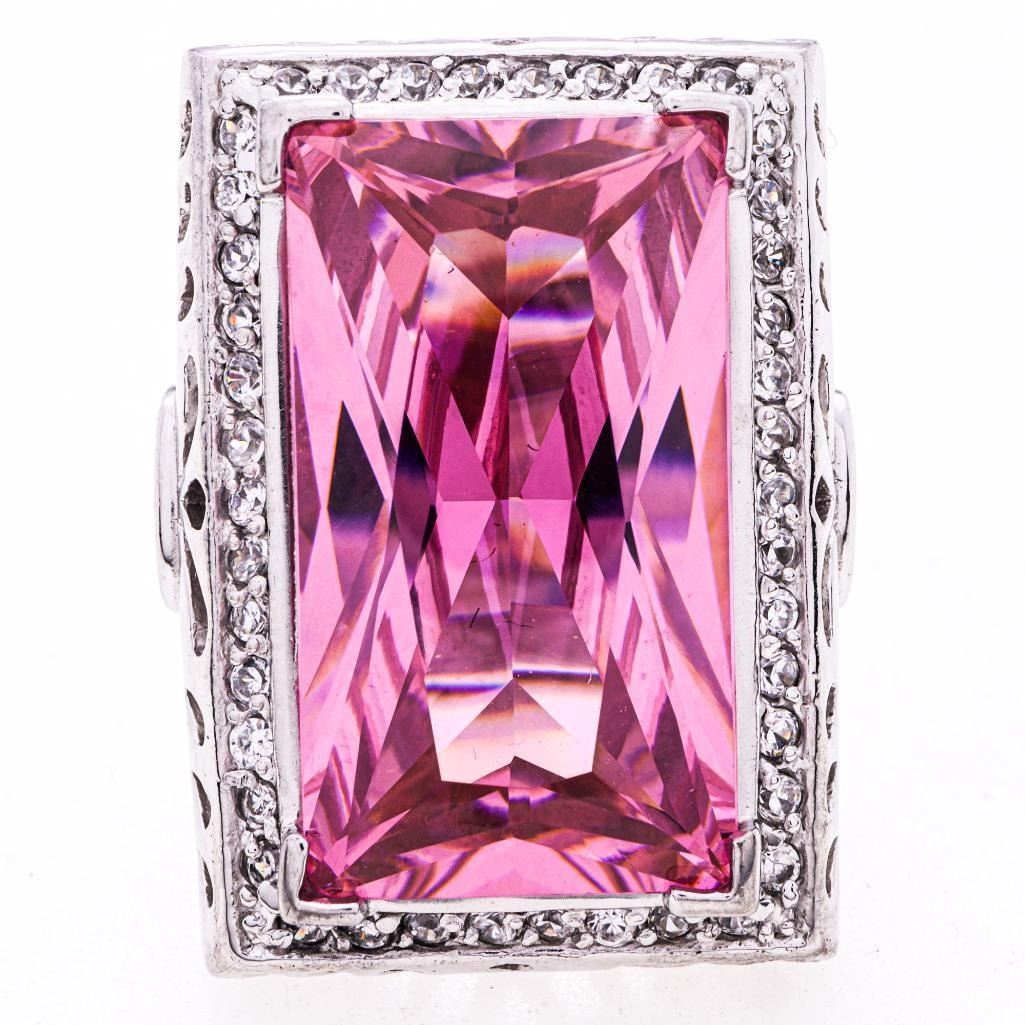 Sterling Silver Pink Tourmaline W/ bead Set Halo of Swarovski Elements