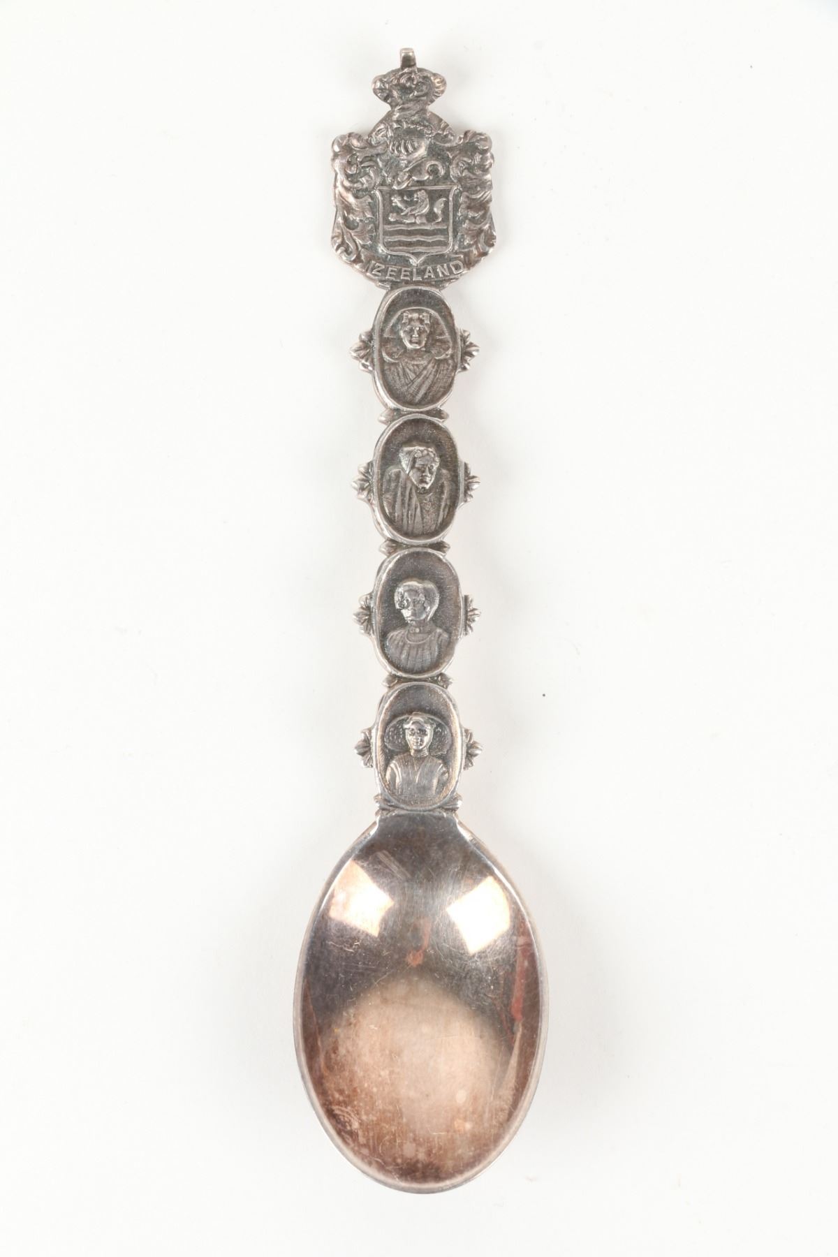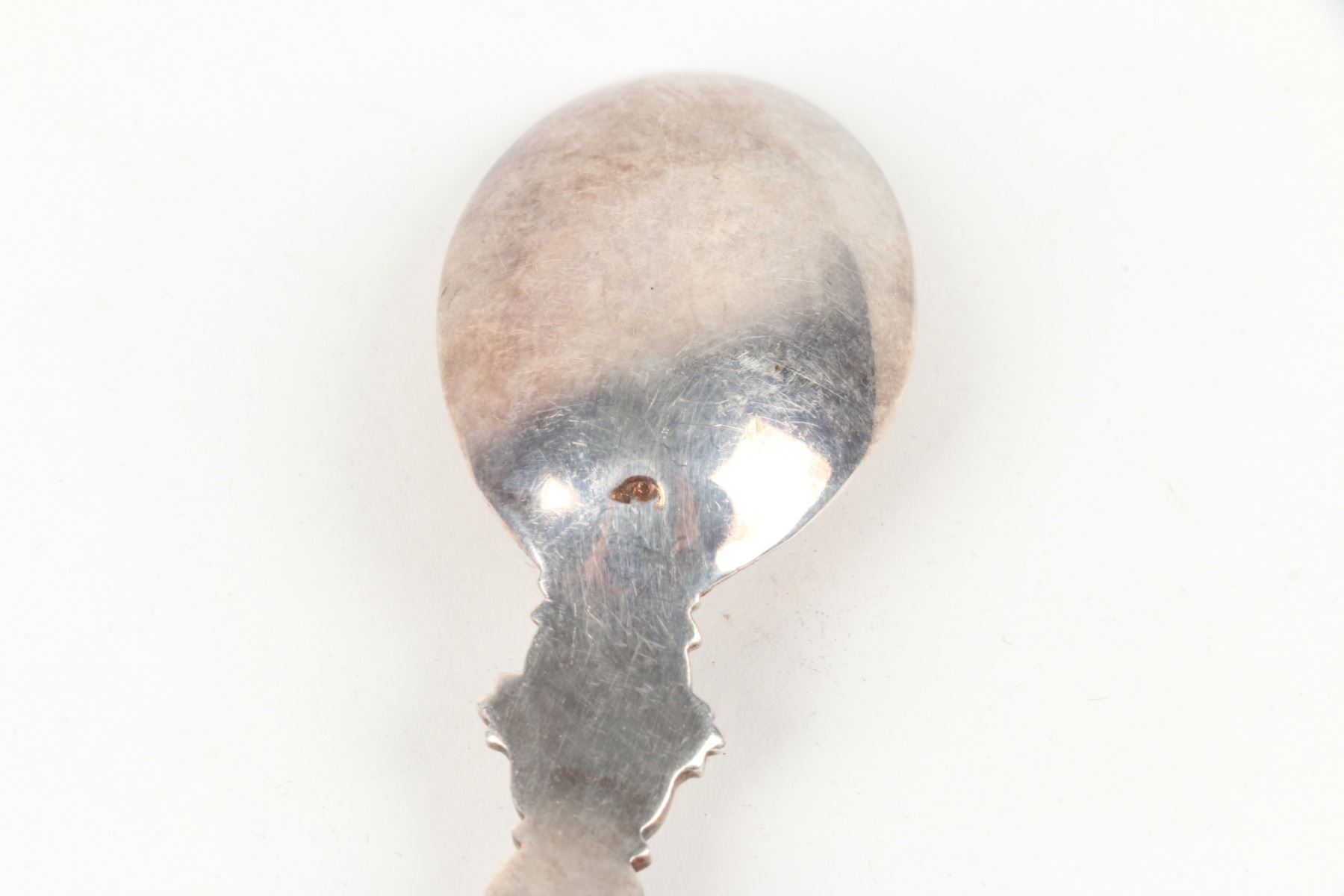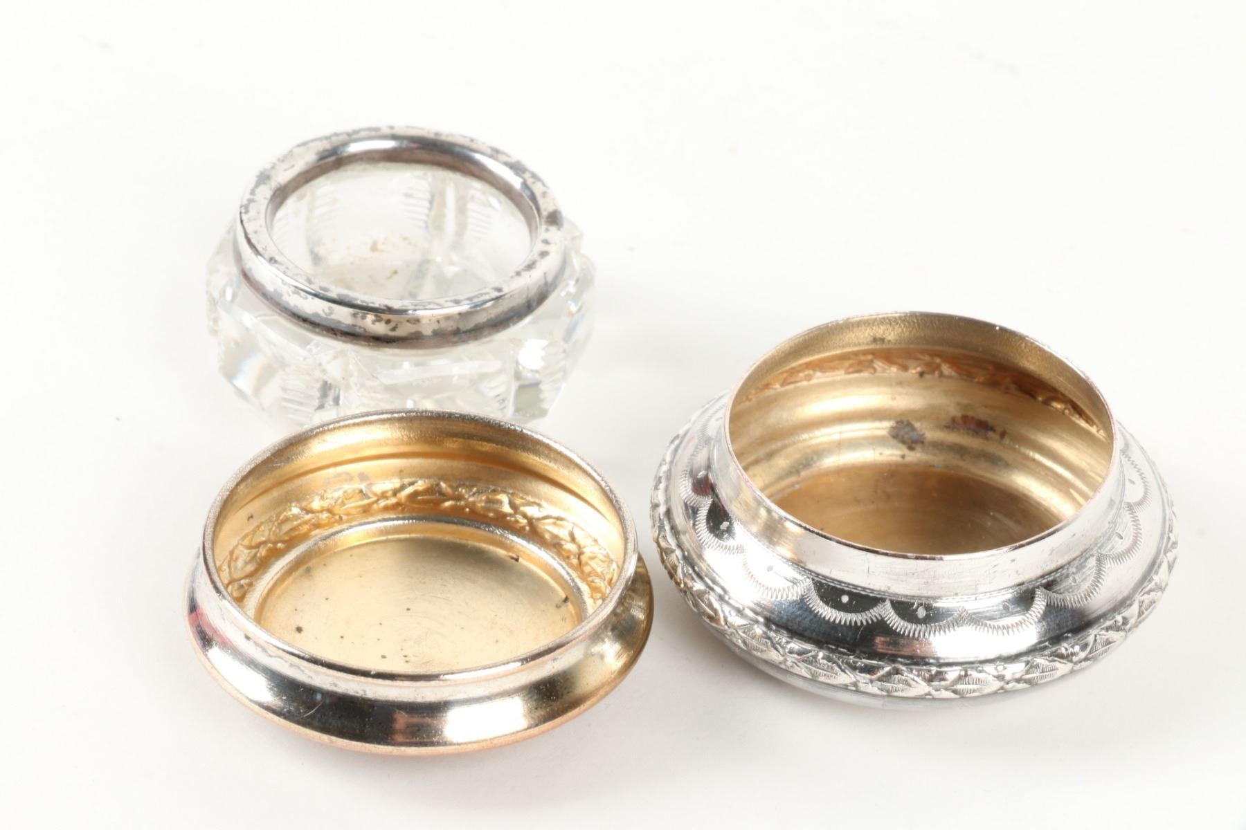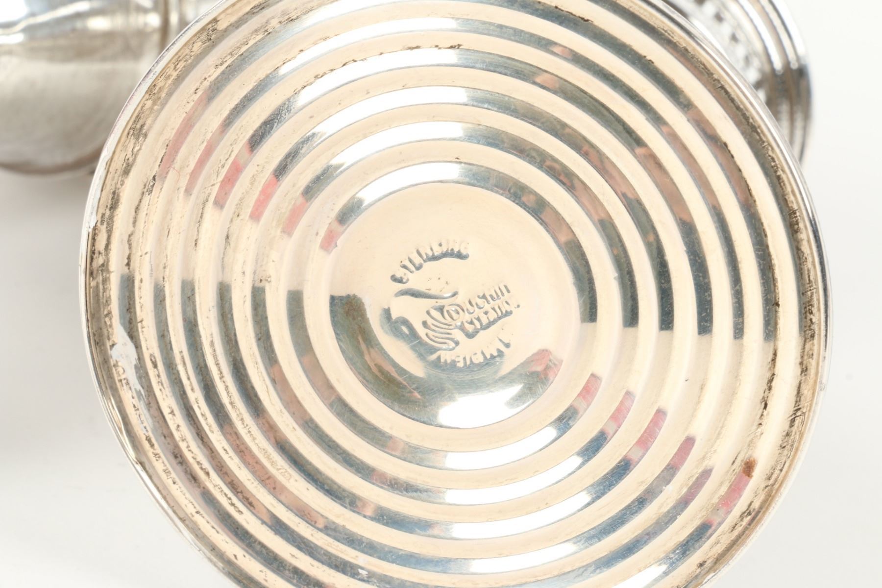 Lot 467 - Pair (2) weighted sterling candlesticks. Zeeland souvenir spoon, cut glass cellar and plated compact. Candlesticks 3.25” h. $100-200.