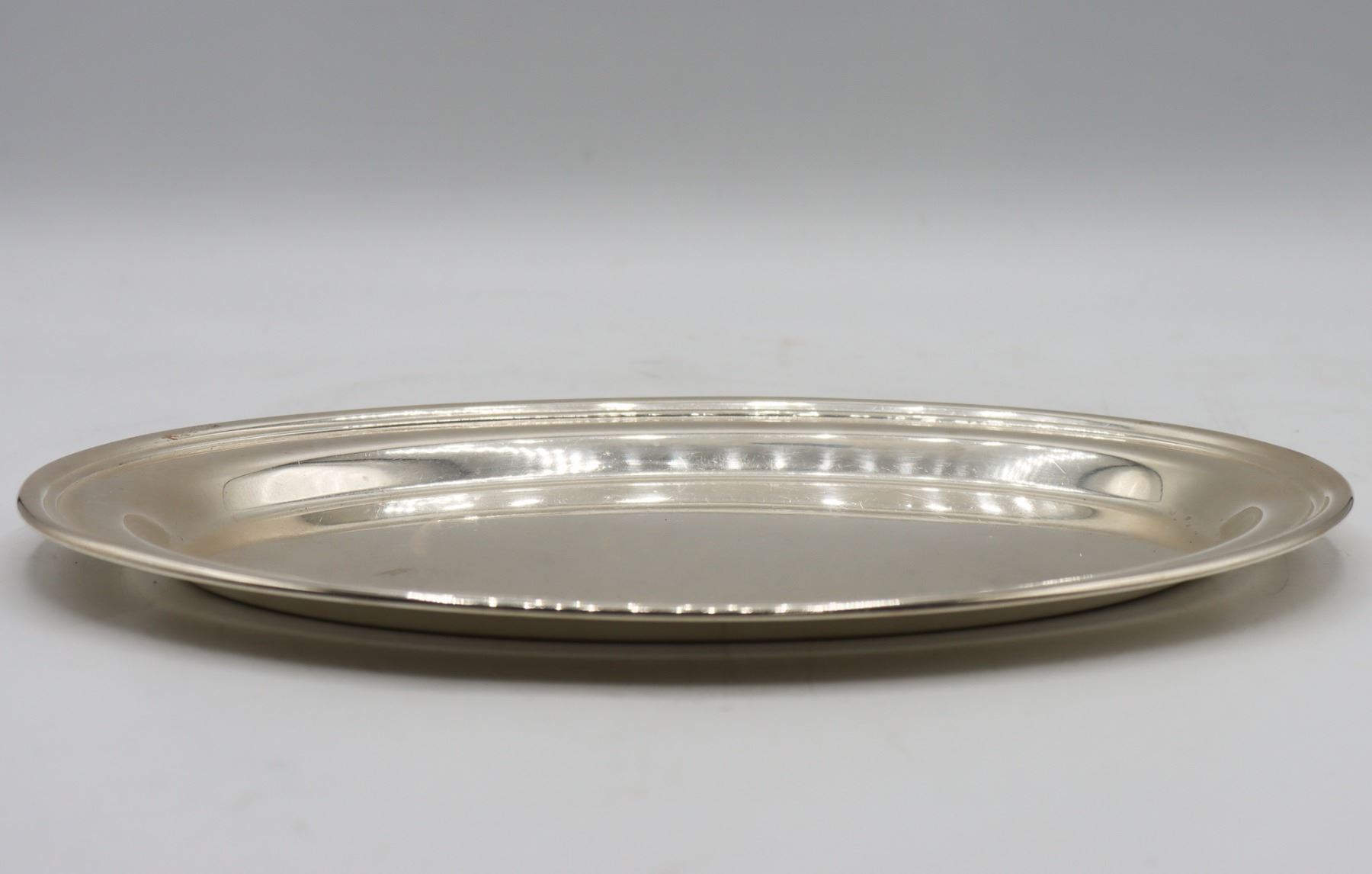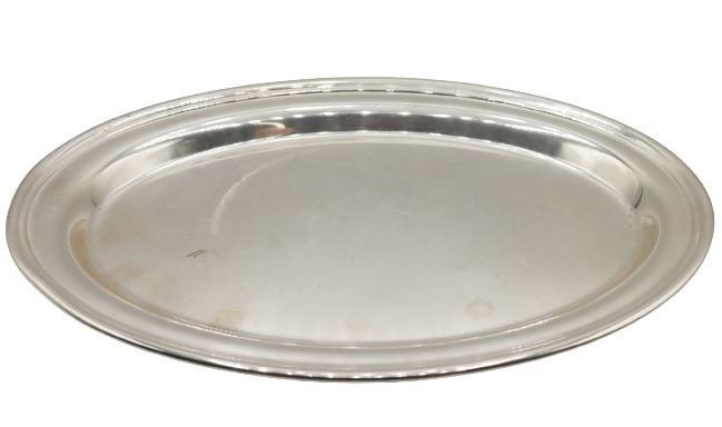 Sterling silver platter, marked sterling on the underside. It is approx 4.68 OZT. Size: 9 x 6 in.