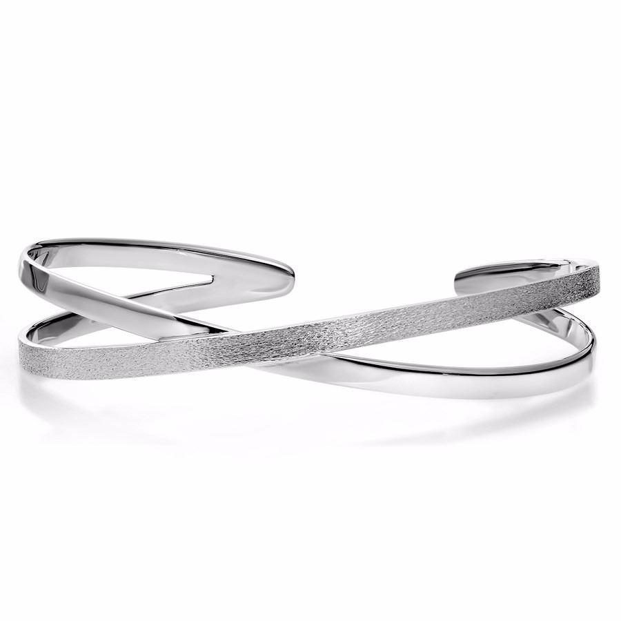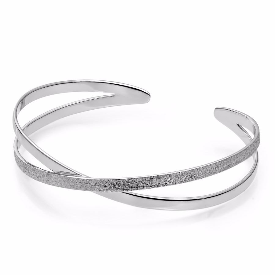 One Sterling Silver Polished and Textured Bangle.