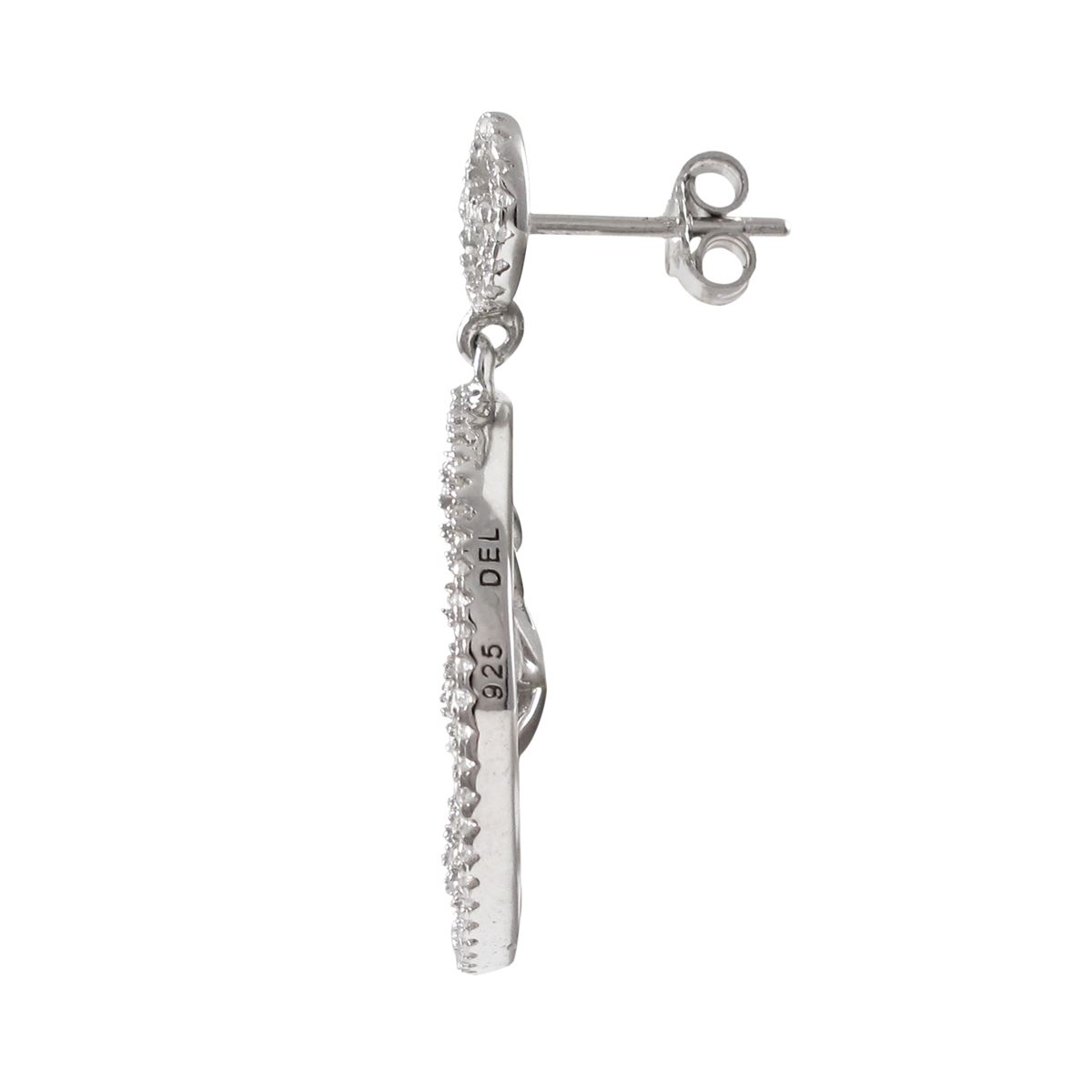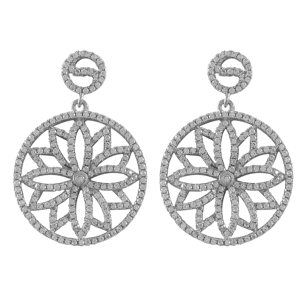 Sterling Silver Post Earrings Flower Design, White Czs, Bottom Circle Is 23Mm Wide & Earrings Are 32Mm Long