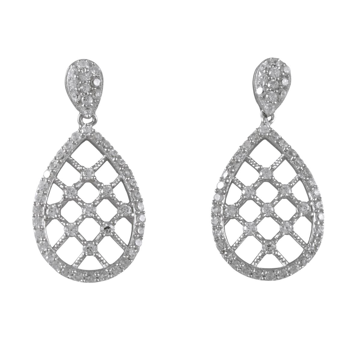 Sterling Silver Post Earrings, Teardrop Shape With White Czs, 32Mm Long