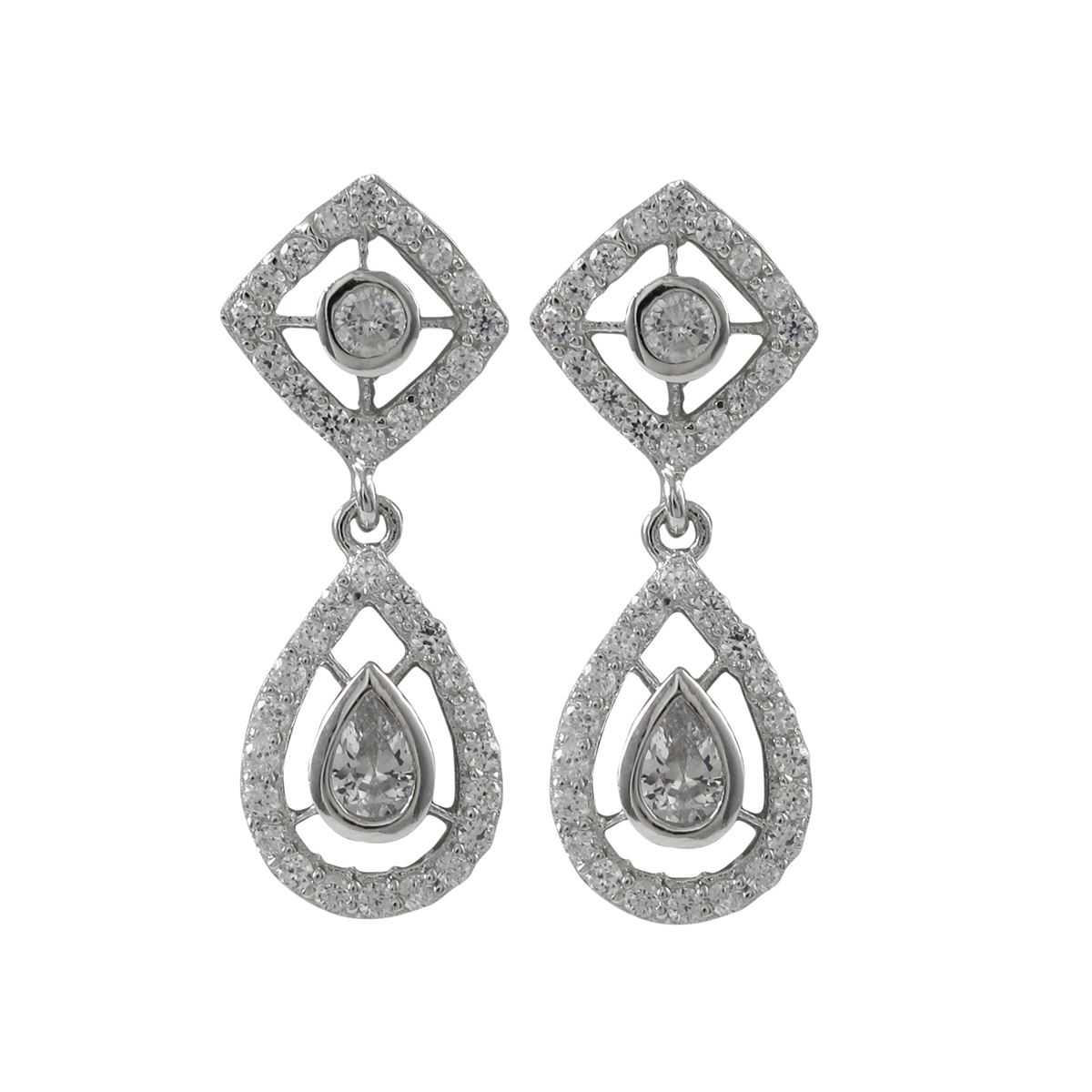 Sterling Silver Post Earrings With Teardrop And Round White CZ, 0.98"
