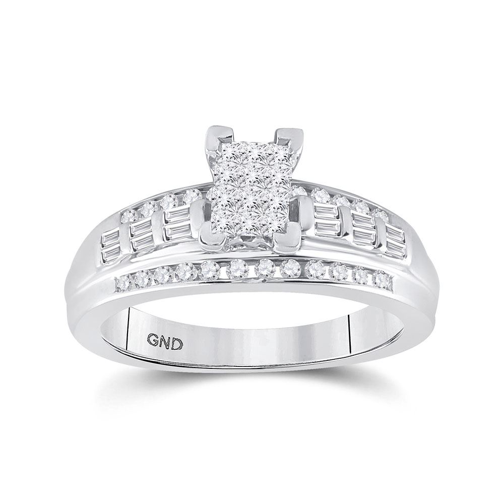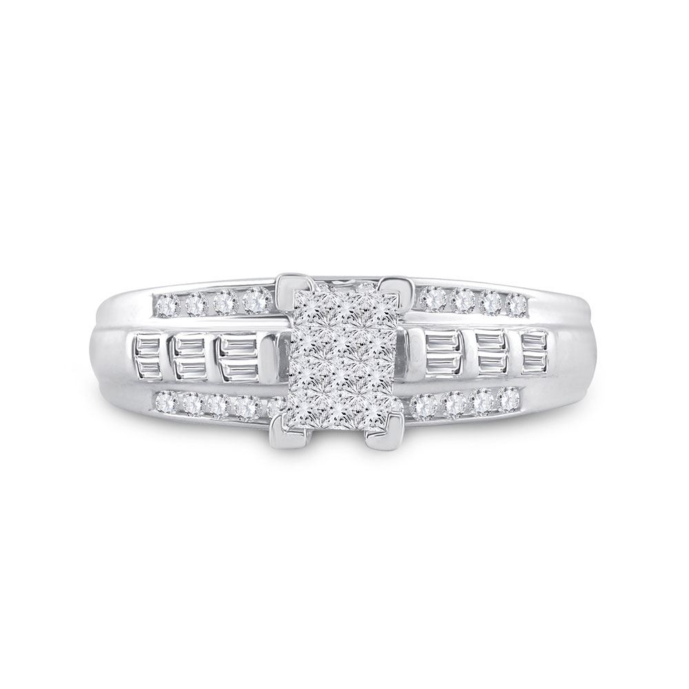 Sterling Silver Princess Diamond Cluster Bridal Wedding Engagement Ring 1/2 Cttw Sterling Silver
