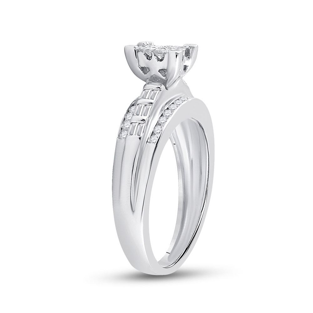 Sterling Silver Princess Diamond Cluster Bridal Wedding Engagement Ring 1/2 Cttw