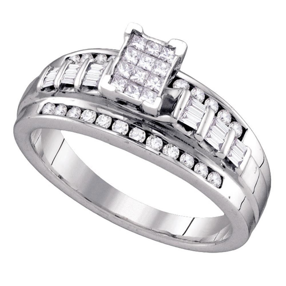 Sterling Silver Womens Princess Diamond Cluster Bridal Wedding Engagement Ring 1/2 Cttw