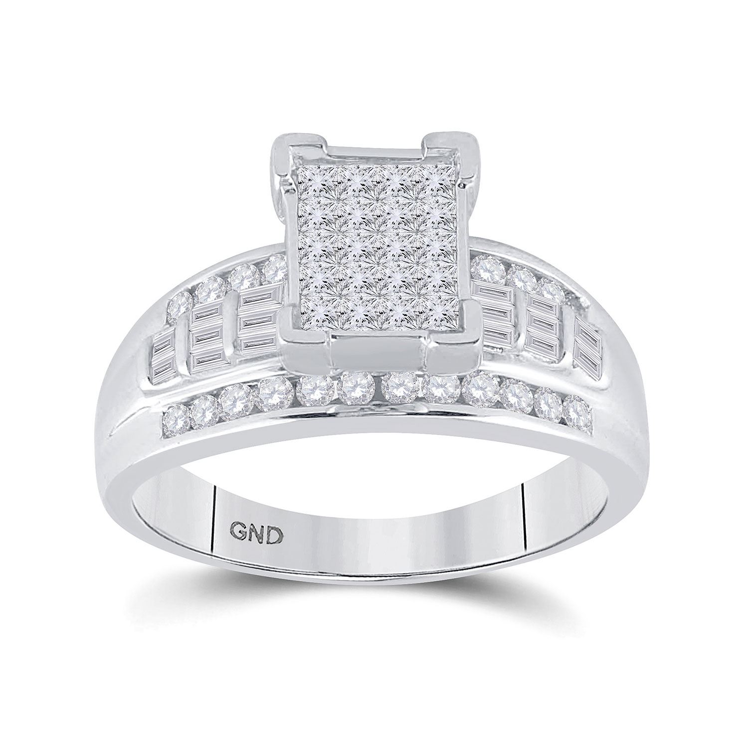 Sterling Silver Princess Diamond Cluster Bridal Wedding Engagement Ring 3/4 Cttw