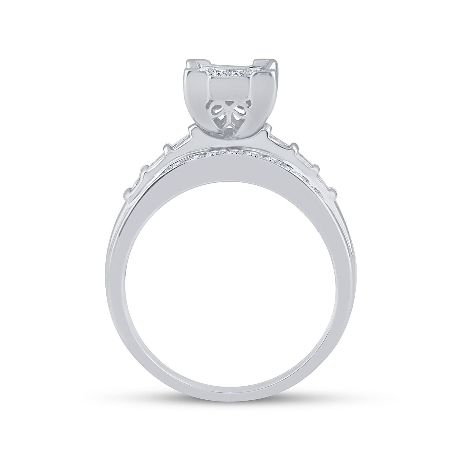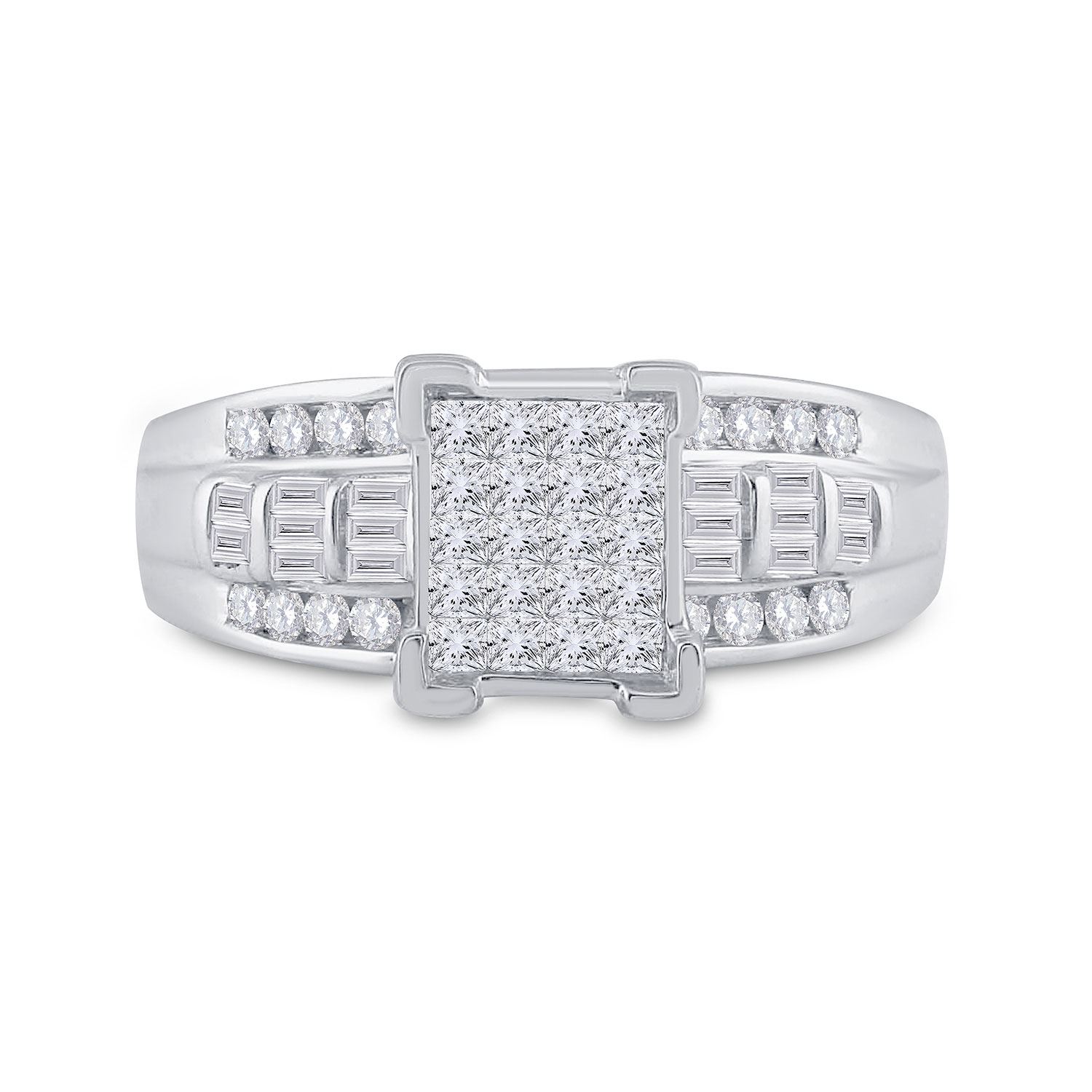 Sterling Silver Princess Diamond Cluster Bridal Wedding Engagement Ring 3/4 Cttw Sterling Silver