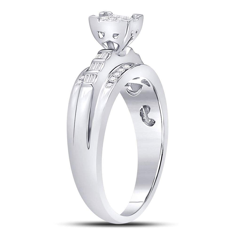 Sterling Silver Princess Diamond Square Cluster Bridal Wedding Engagement Ring 1/3 Cttw