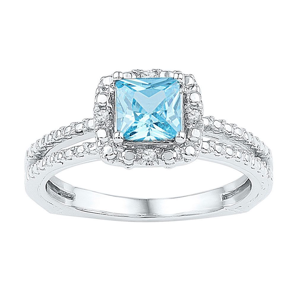 SKU: RB103783 ---- Sterling Silver Princess Lab-Created Blue Topaz Solitaire Ring 1.00 Cttw