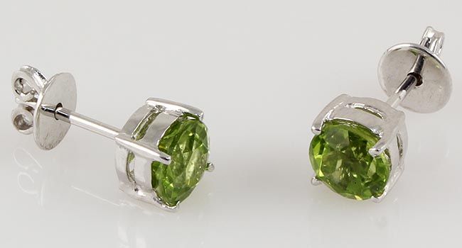 Sterling Silver Prong Set Earring with Peridot Gesmtone **|**|** Roudn Cut Peridot Gemstone Set in Sterling Silver Prong Earring ; MSRP: $100