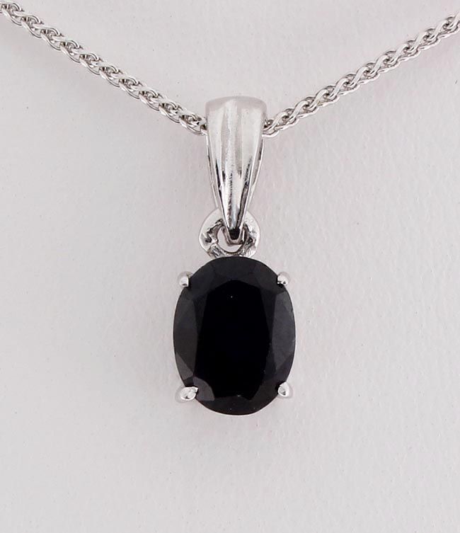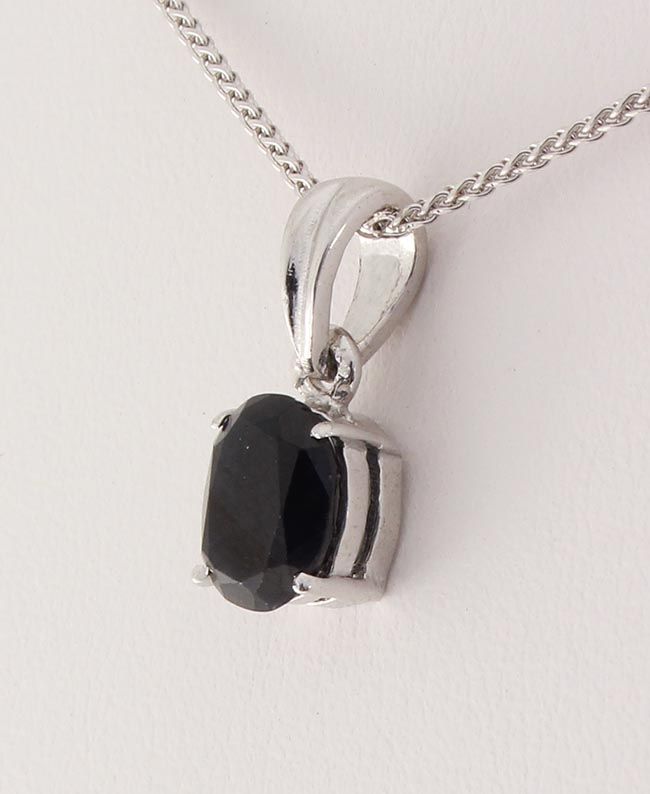 Sterling Silver Prong Set Pendant w/ Dark Sapphire **|**|** Oval Cut Dark Blue Sapphire Stone Set in Sterling Silver Prong Pendant ; MSRP: $100