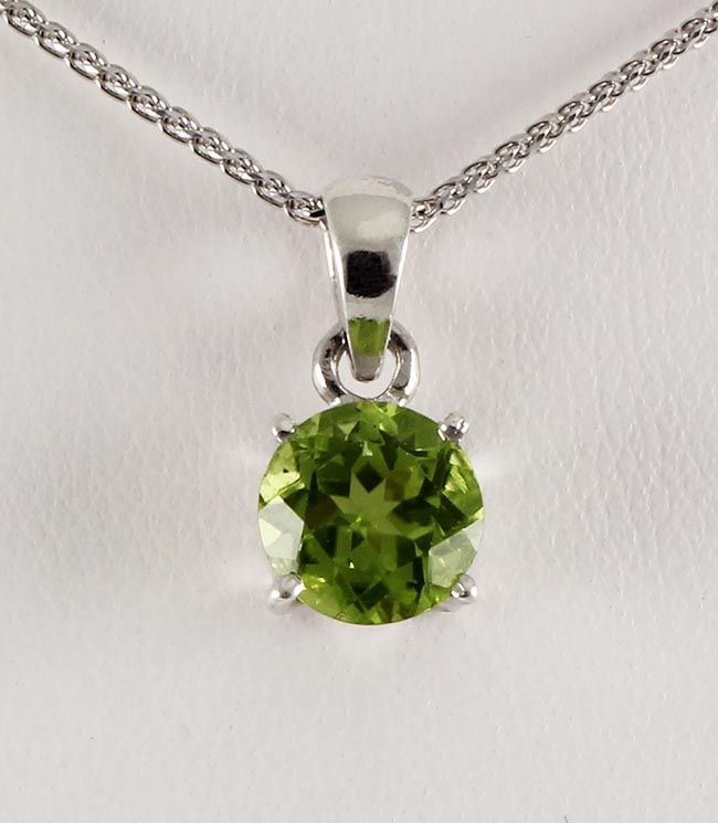 Sterling Silver Prong Set Pendant with Peridot **|**|** Round Cut Peridot Gemstone Set in Sterling Silver Prong Pendant ; MSRP: $0