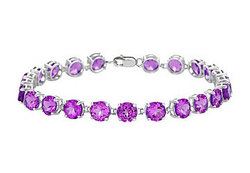 This classy and versatile bracelet surrounded on your wrist with round amethysts in prong-setting. Each stone size consists of 5.5 MM and the bracelet is 7 inches long with a lobster clasp. The entire bracelet is made in rhodium .925 sterling silver and has a total gem weight (TGW) of 12.00 carats.