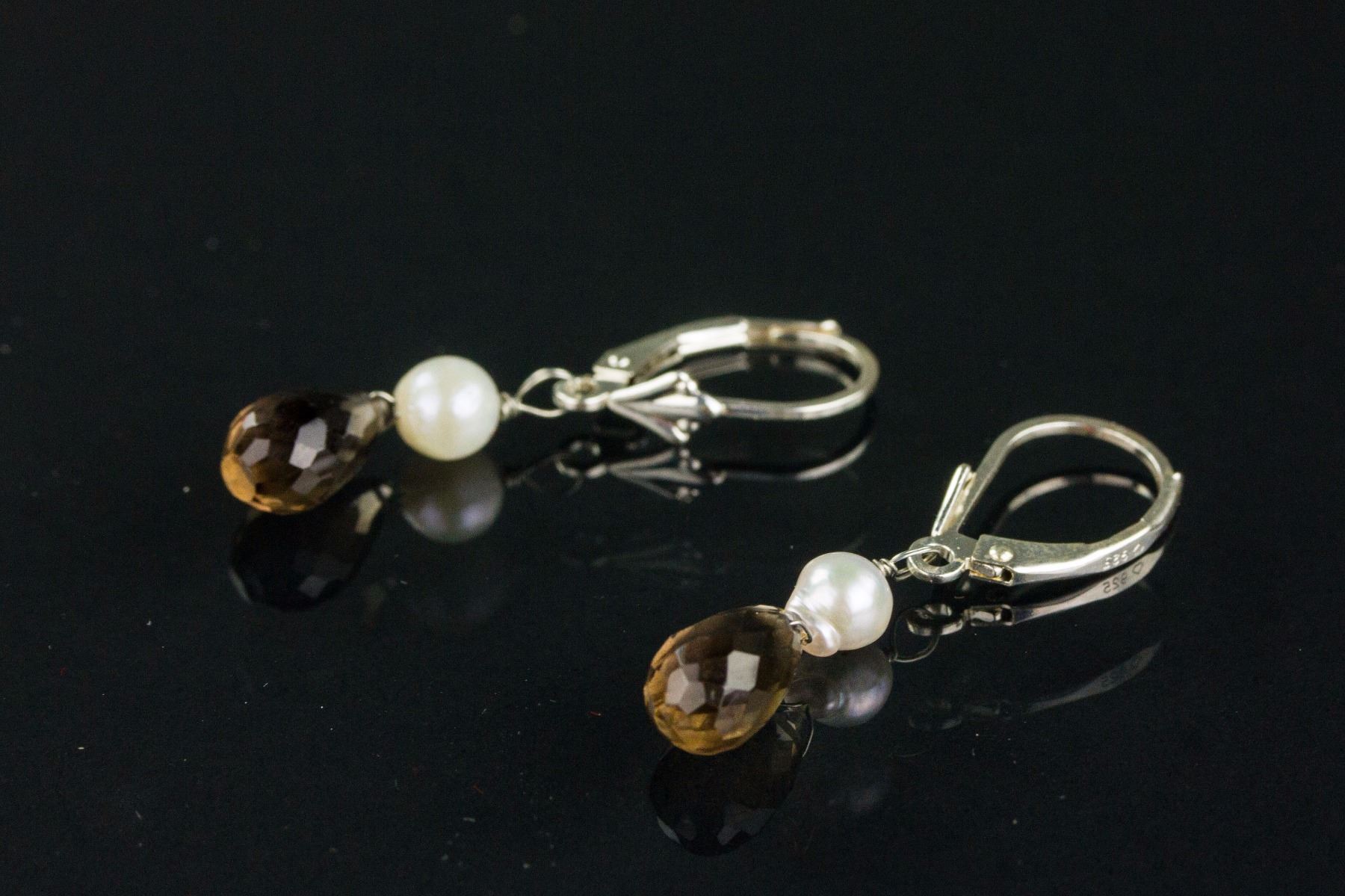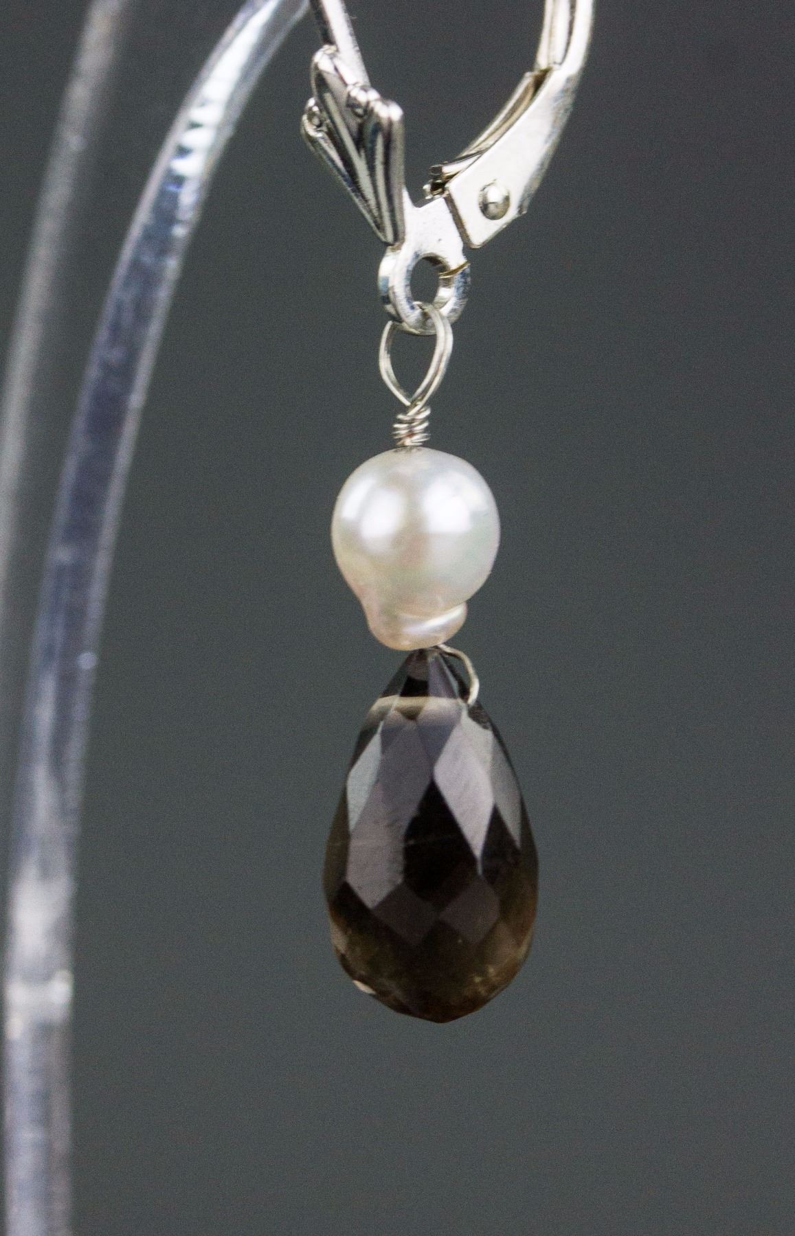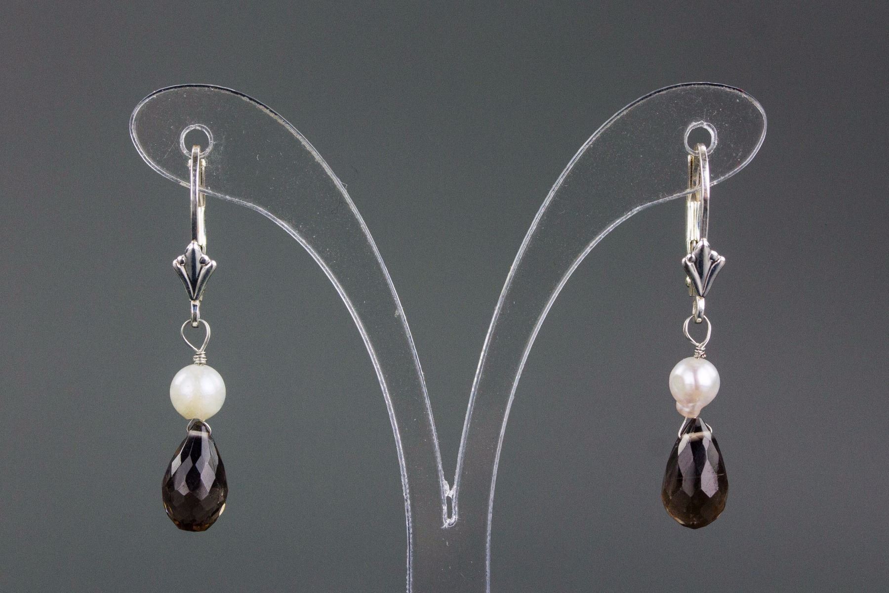 Sterling silver Smokey quartz earrings; featuring a drop shaped earrings; replacement value CAD$60; 3.2 cm x 1 cm, 1 gram