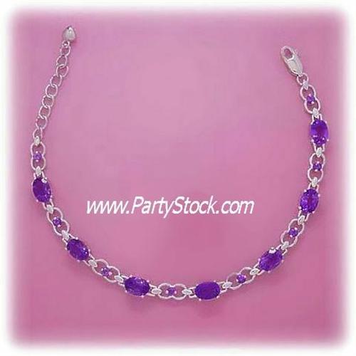 Solid Sterling Silver Genuine Amethyst Bracelet New! Big!