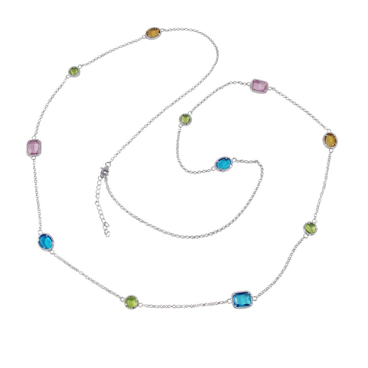 Sterling Silver Rhodium Plated 36" Long Necklace With Multi Color Czs.
