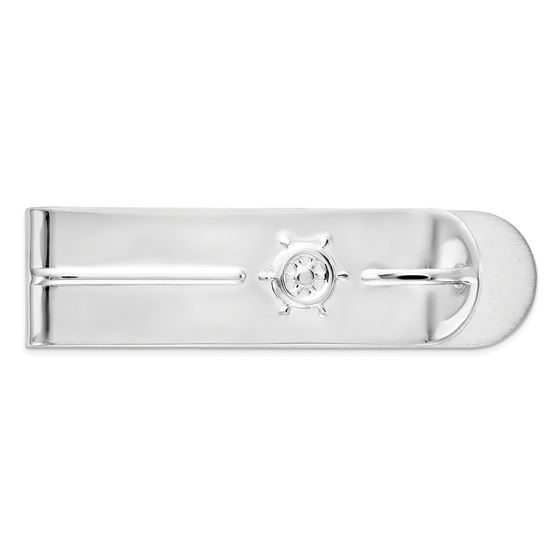 One piece Sterling Silver Rhodium-plated Ships Wheel Money Clip