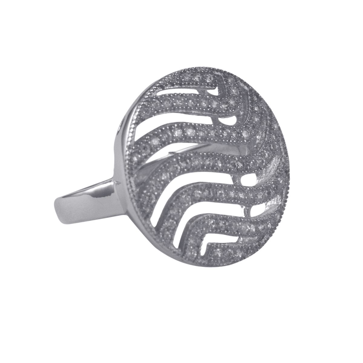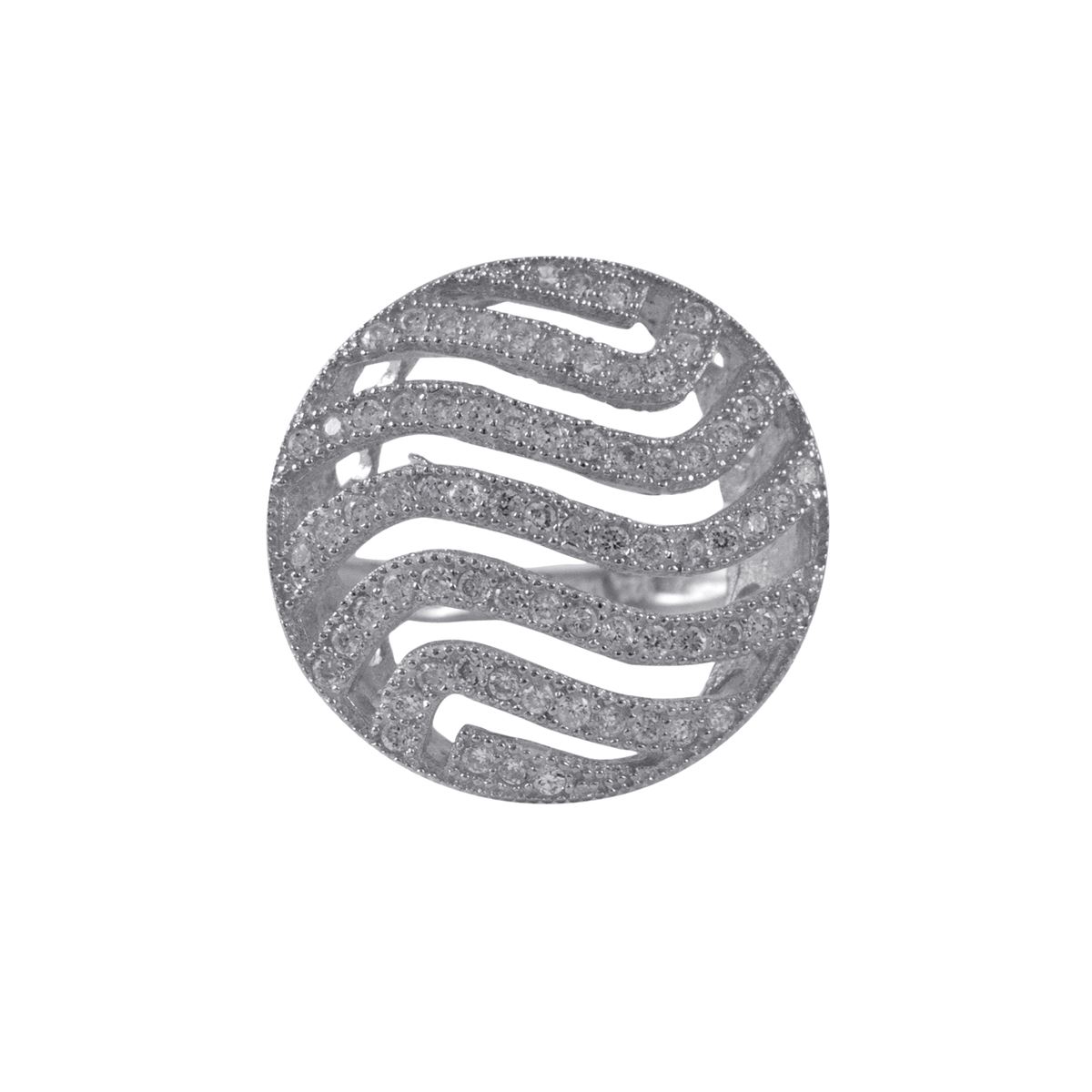 Sterling Silver Ring, 20Mm Circle With Wave Design Covered In White Czs, Size 9