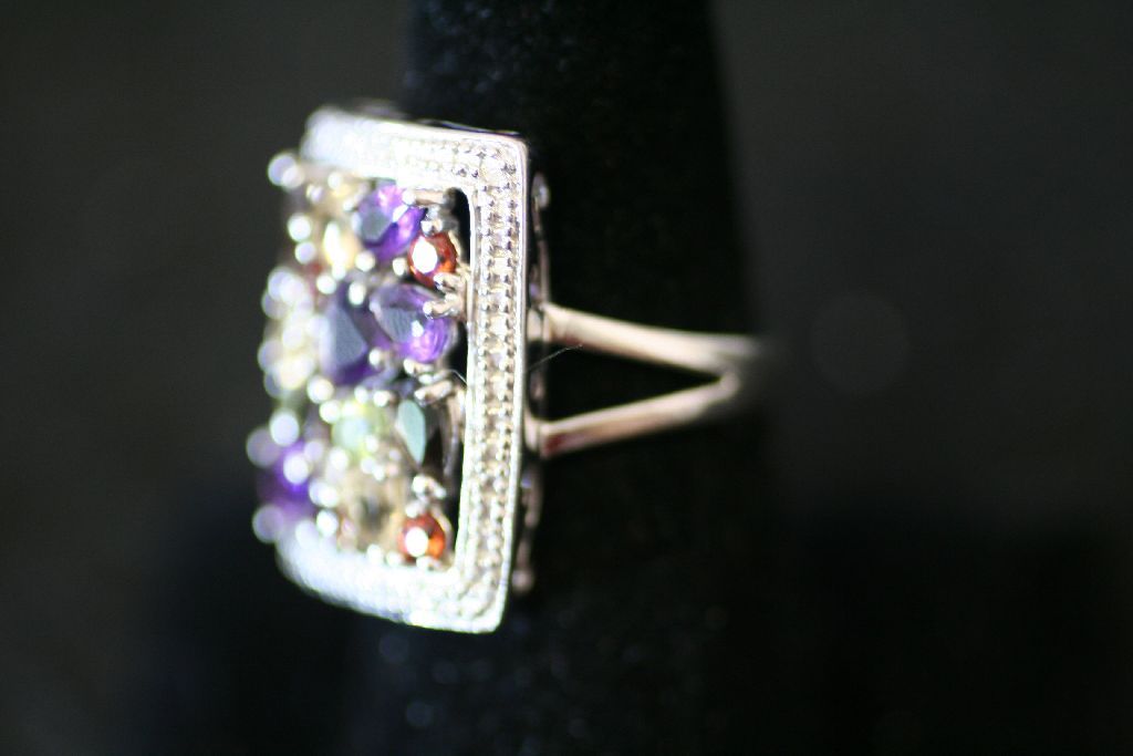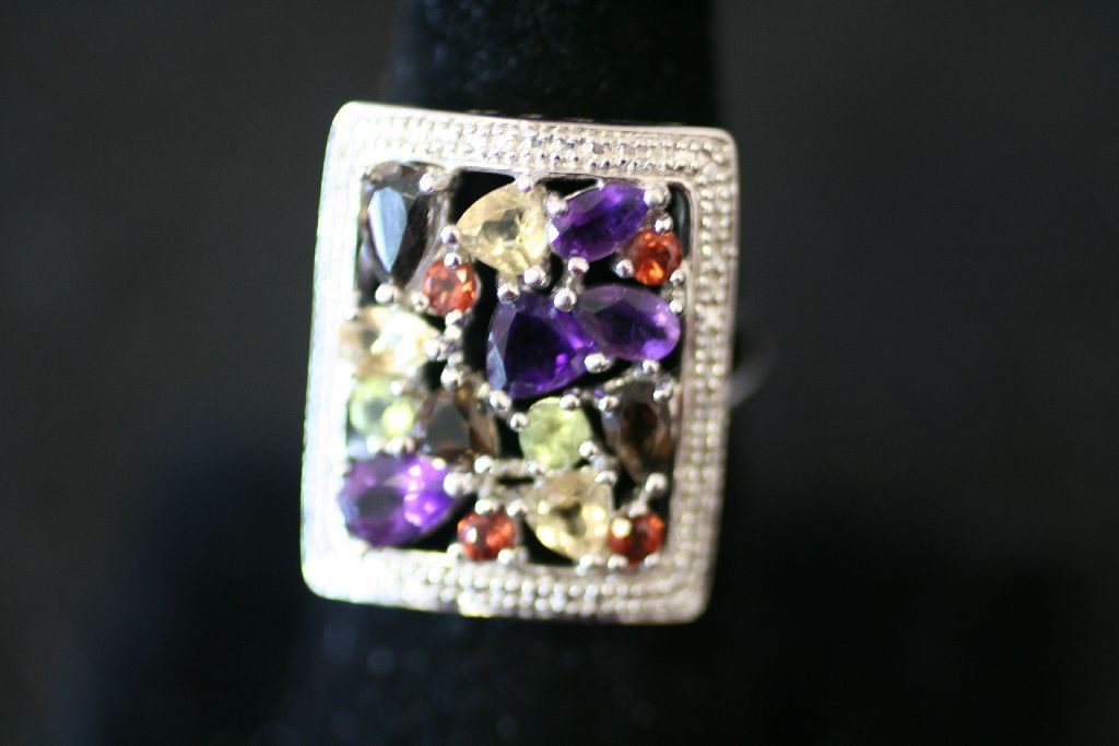Sterling Silver Ring Size 8 W/Multi Colored Gemstones; .925 Silver