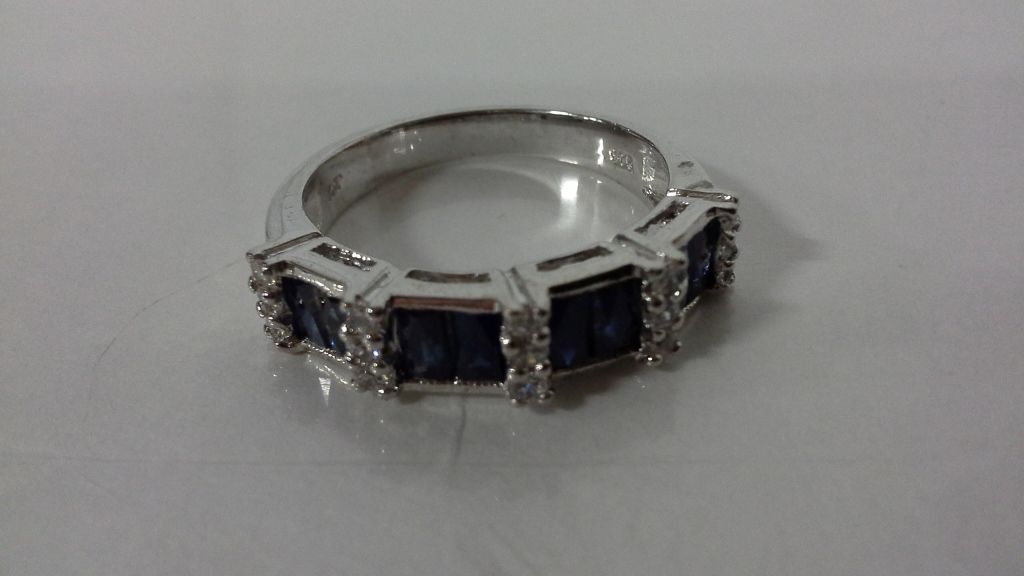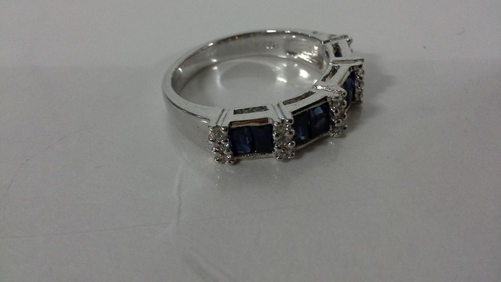 Sterling Silver Ring With Genuine Sapphires & C.Z. Replacement Value $1,000) (size 7.75)