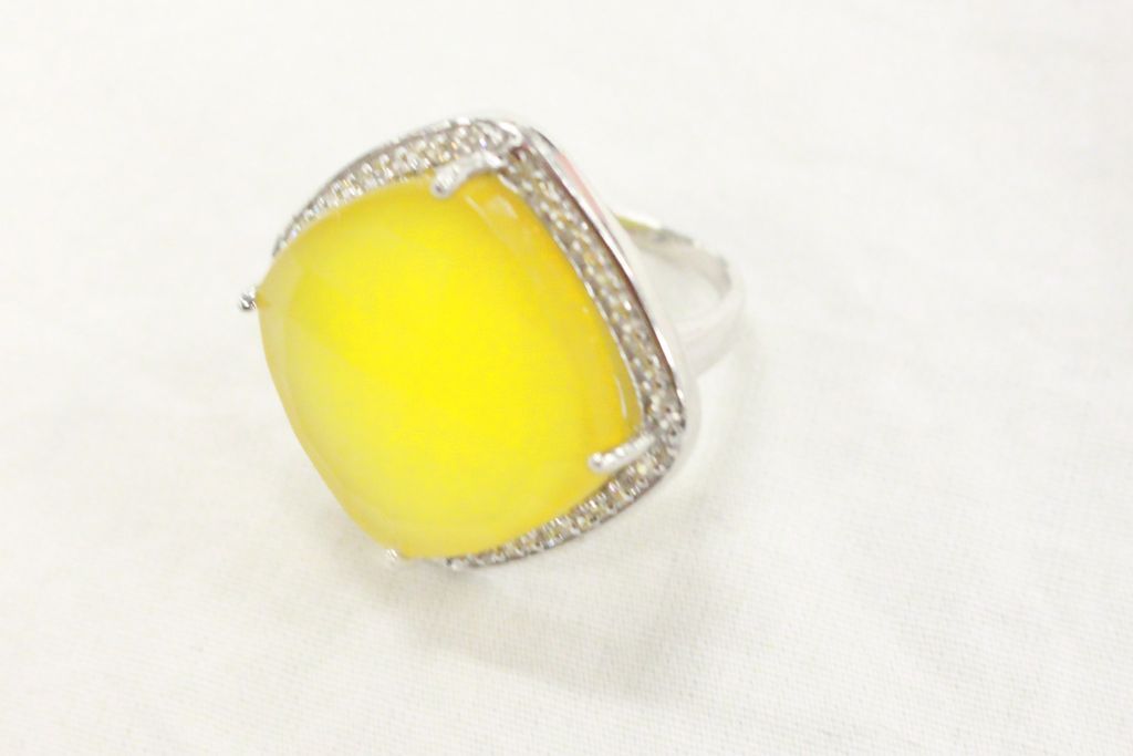 Sterling Silver Ring With Genuine Yellow Agate and C.Z. Size 7