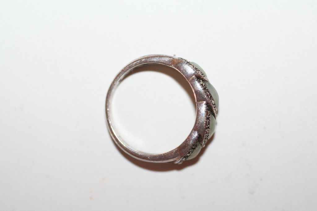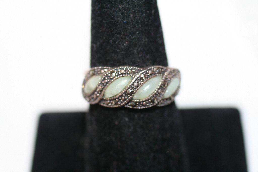 This lot is a sterling silver (.925) ring w/ green stones; size 8