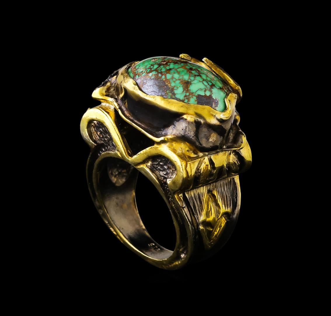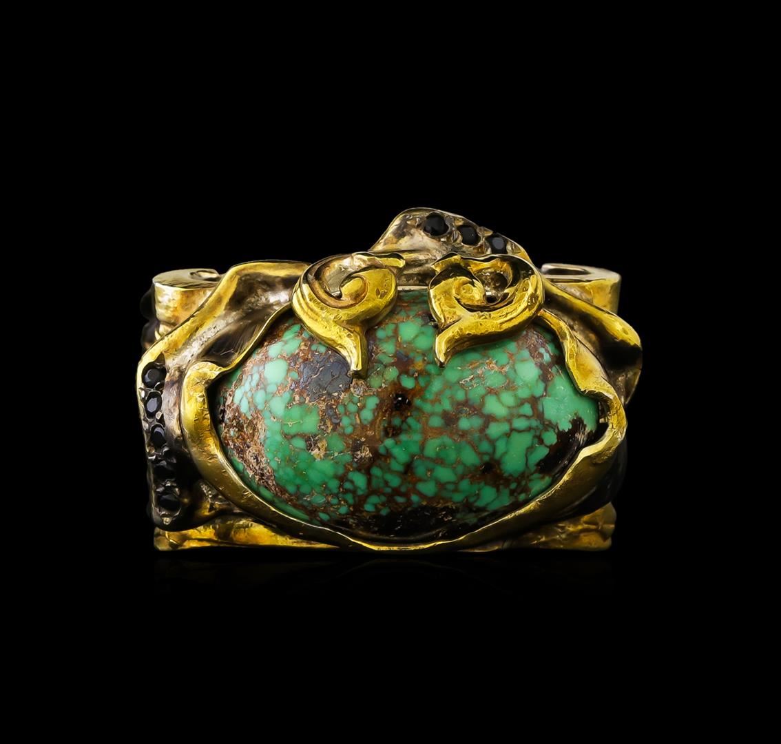 One of a kind high fashion sterling silver Ring weighing 26.3 grams. Black Antique texture. Containing: Turquoise, Black Crystal. This sterling silver promises a lasting shine.