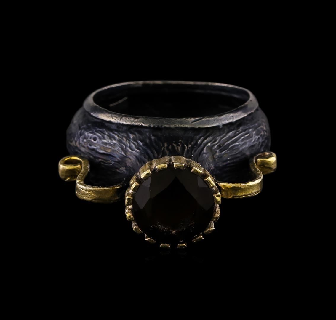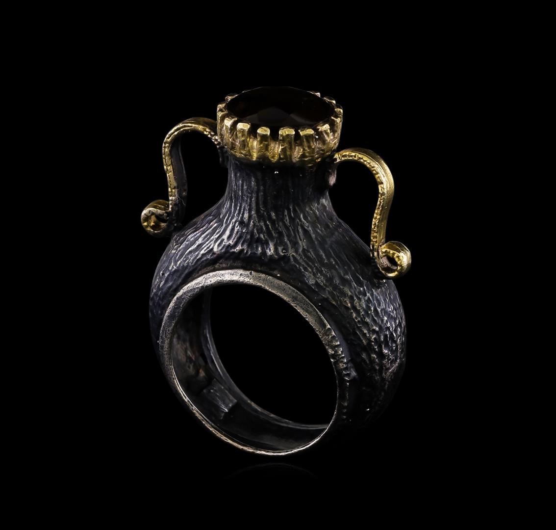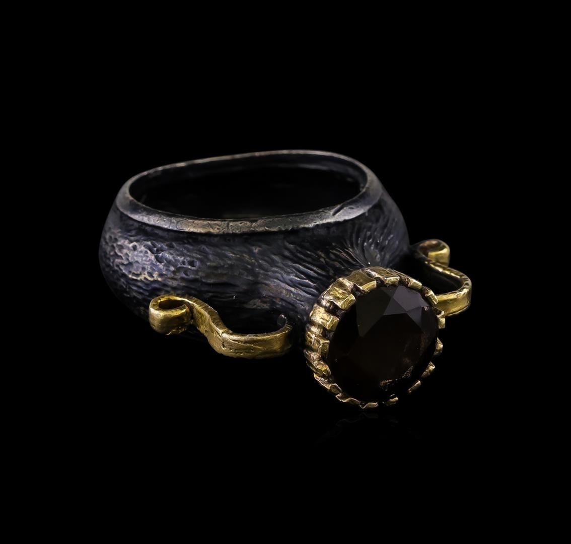 One of a kind high fashion sterling silver Ring weighing 15.2 grams. Black Antique texture. Containing: Brown Quartz. This sterling silver promises a lasting shine.
