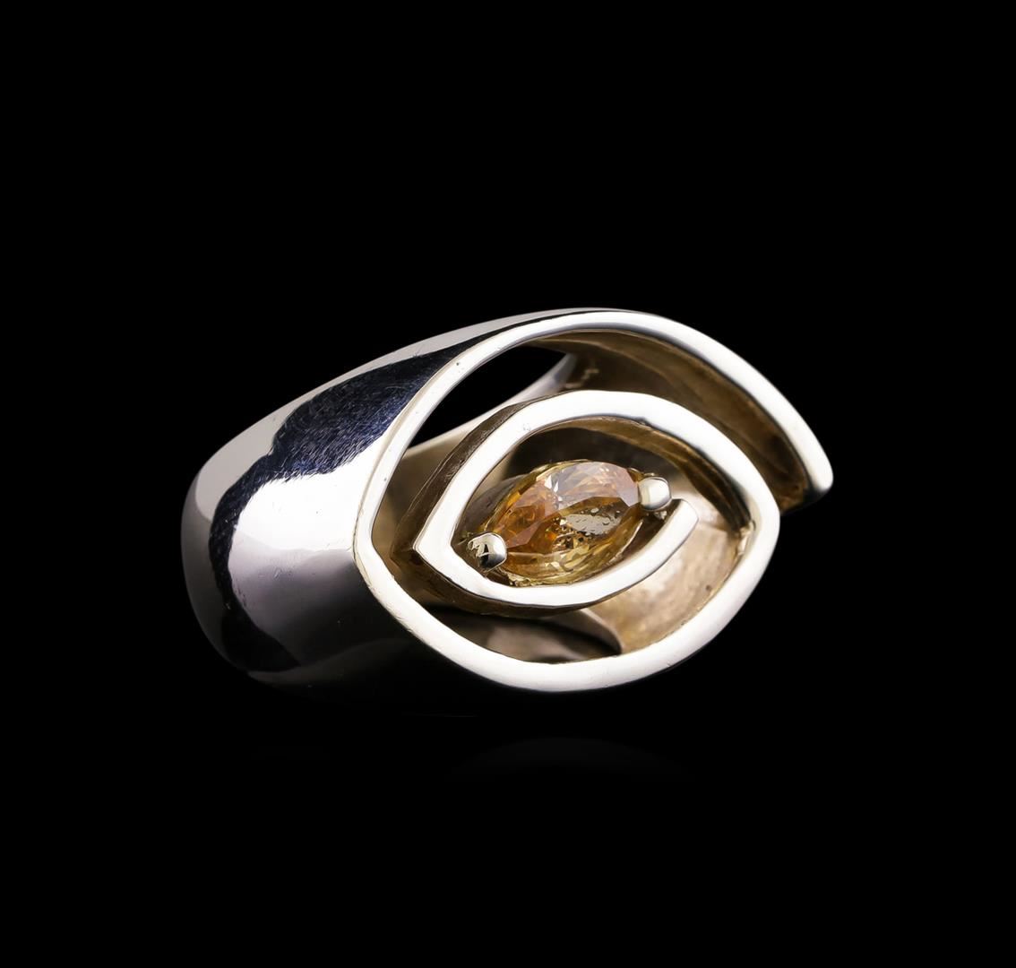 One of a kind high fashion sterling silver Ring weighing 15 grams. Containing: Yellowish Orange Crystal. This sterling silver promises a lasting shine.