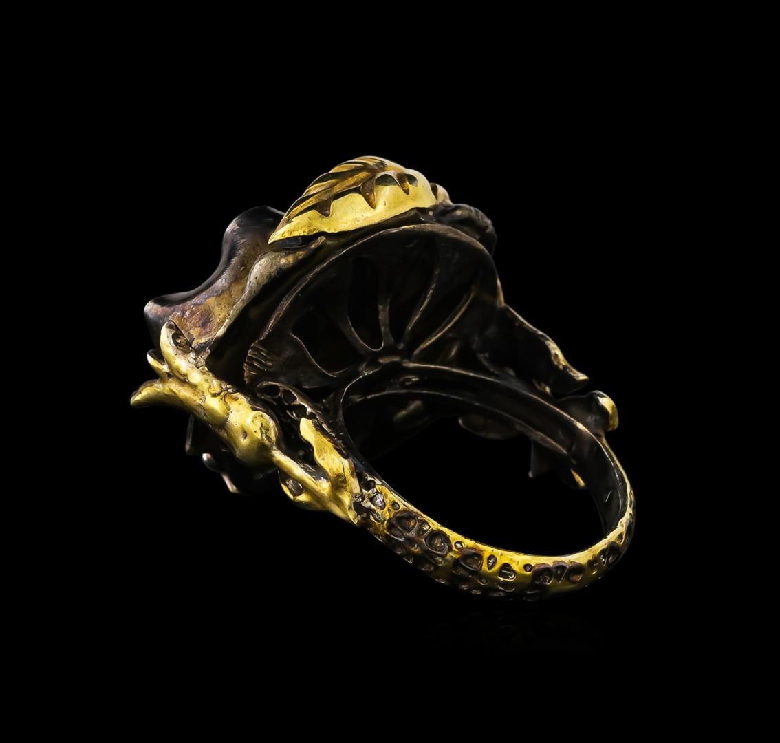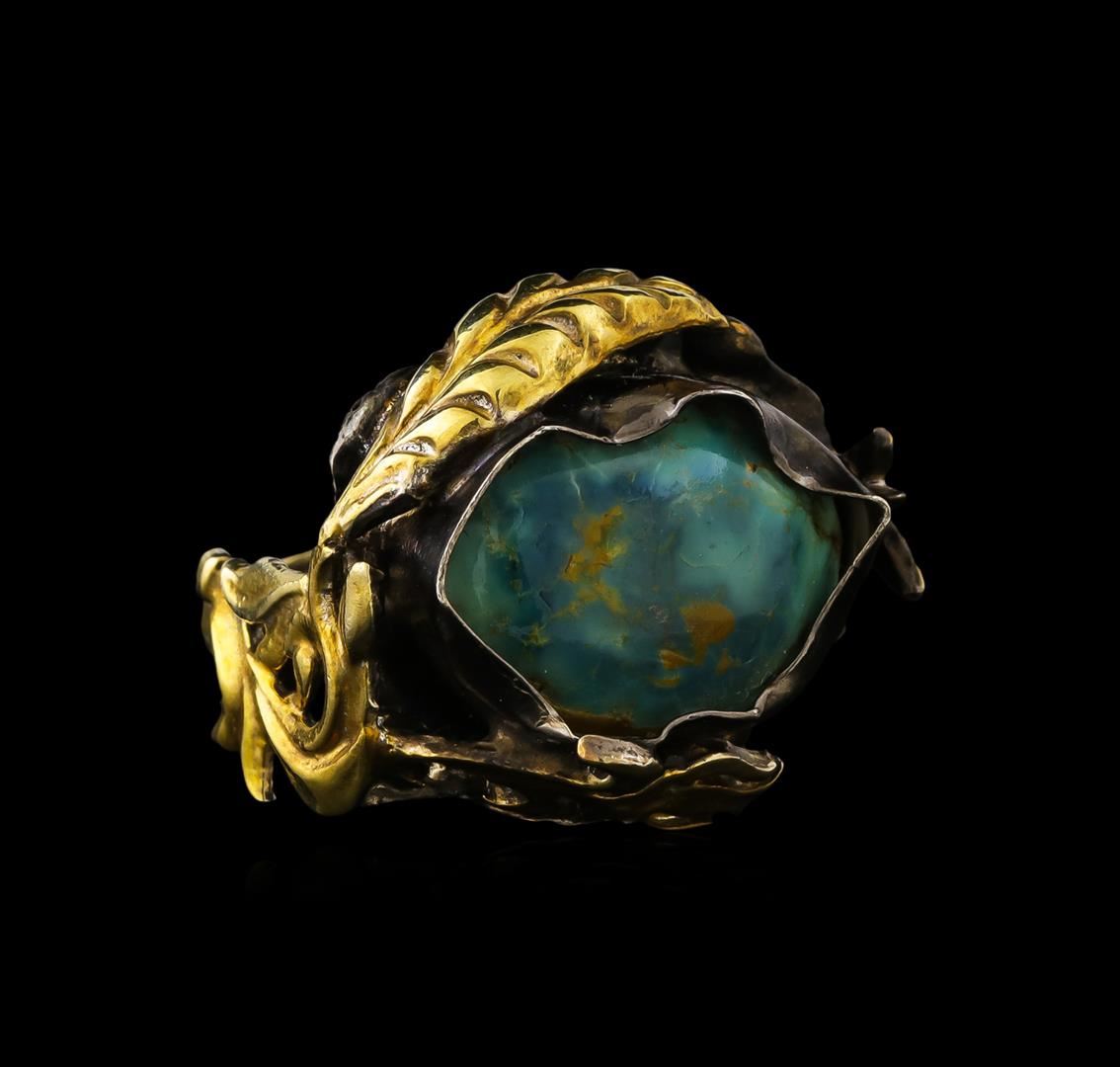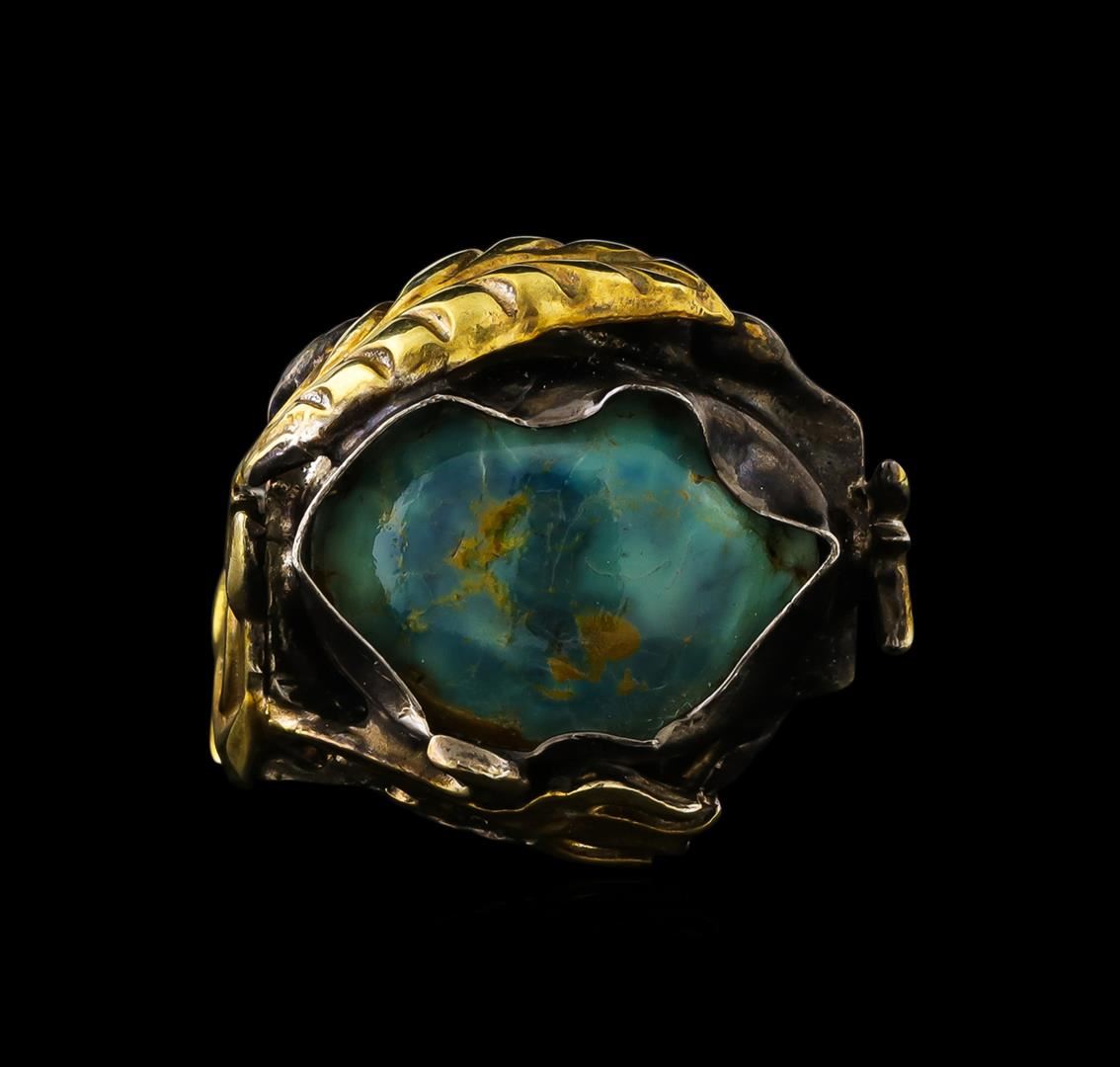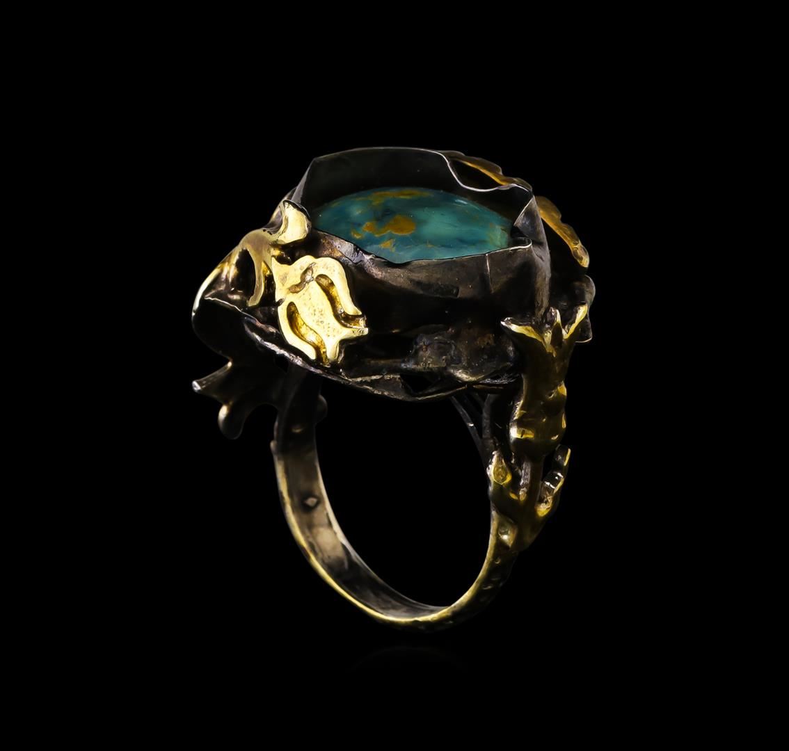 One of a kind high fashion sterling silver Ring weighing 13.4 grams. Black Antique texture. Containing: Created Turquoise. This sterling silver promises a lasting shine.