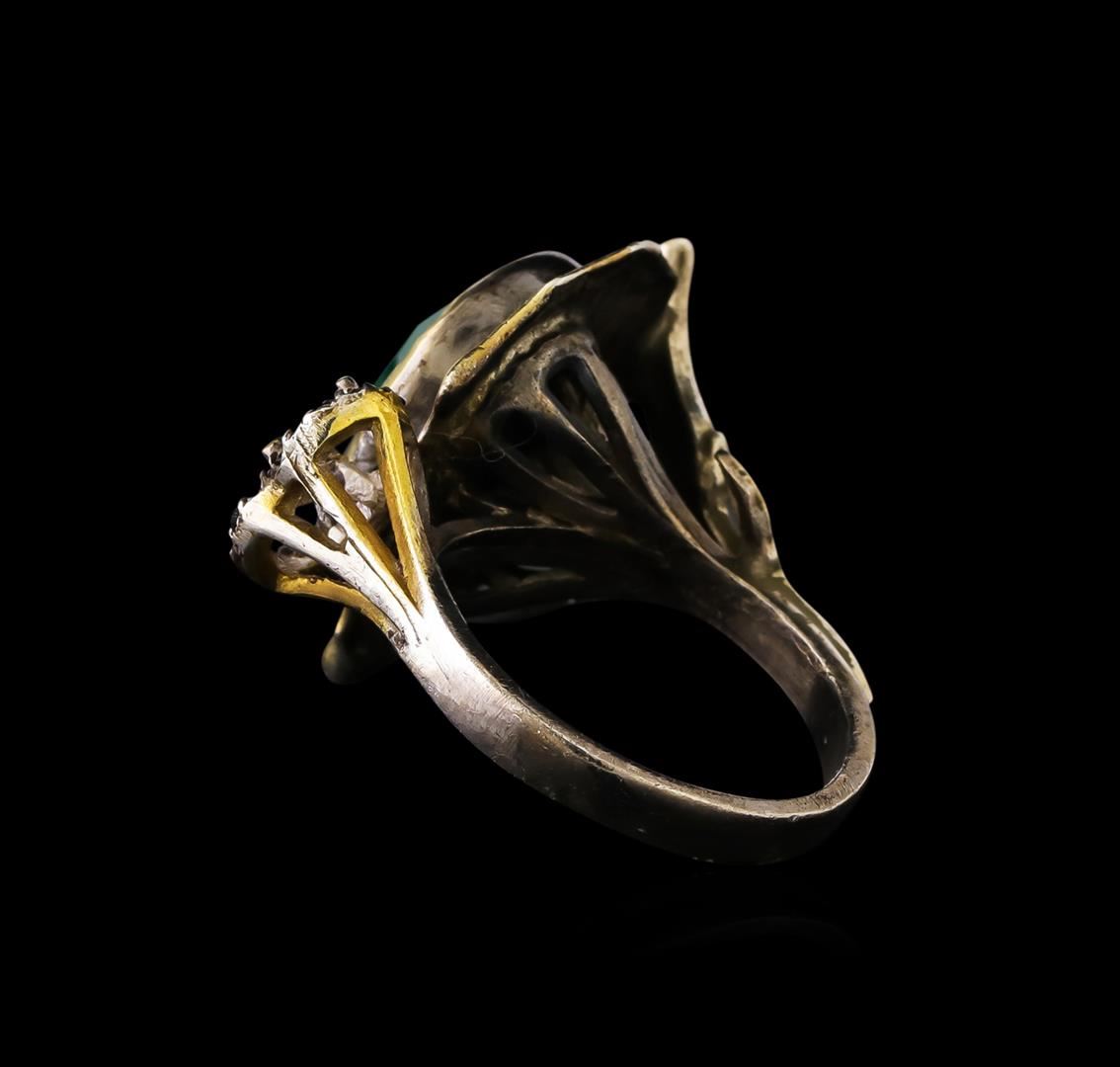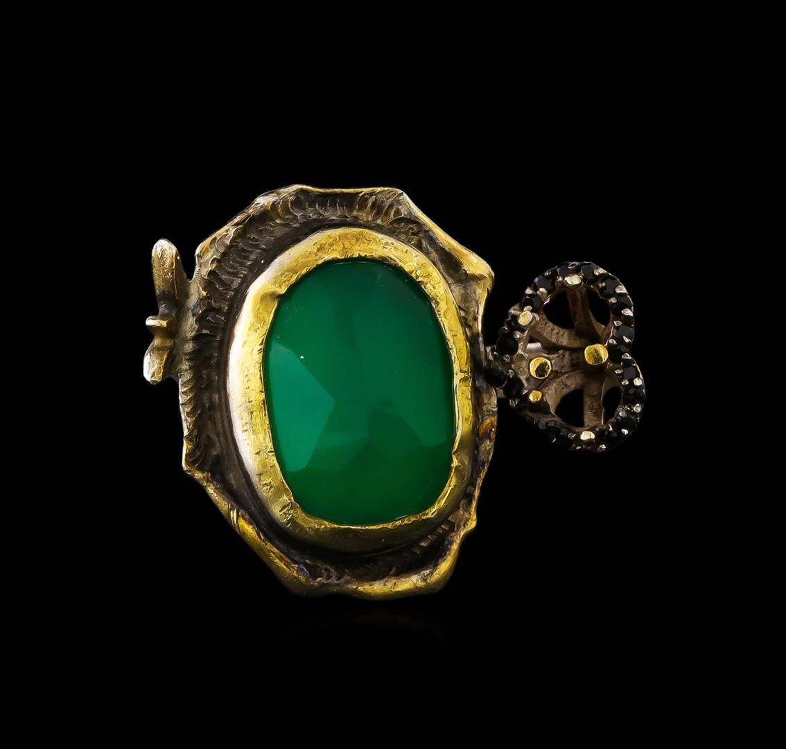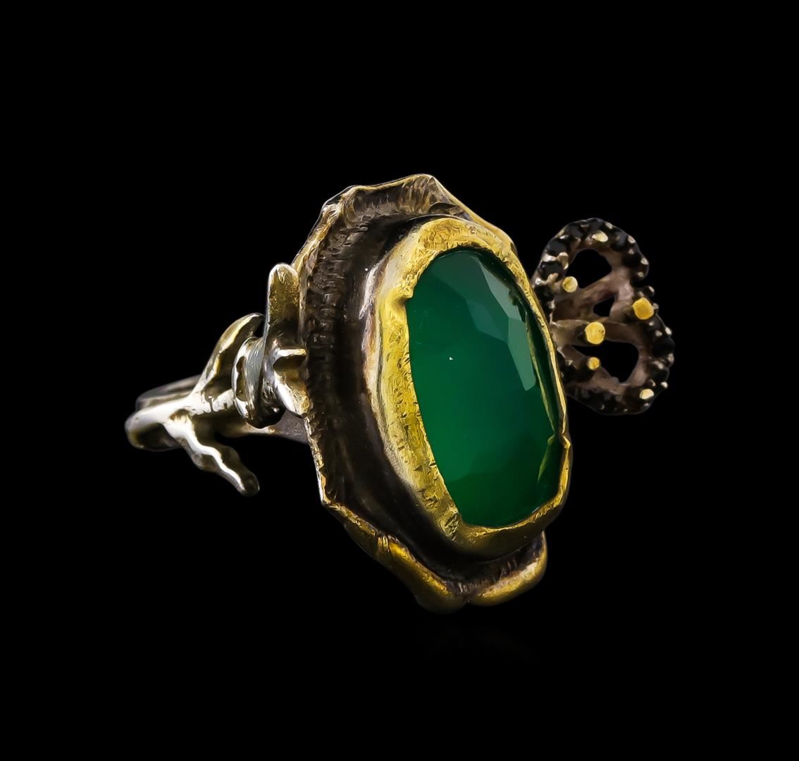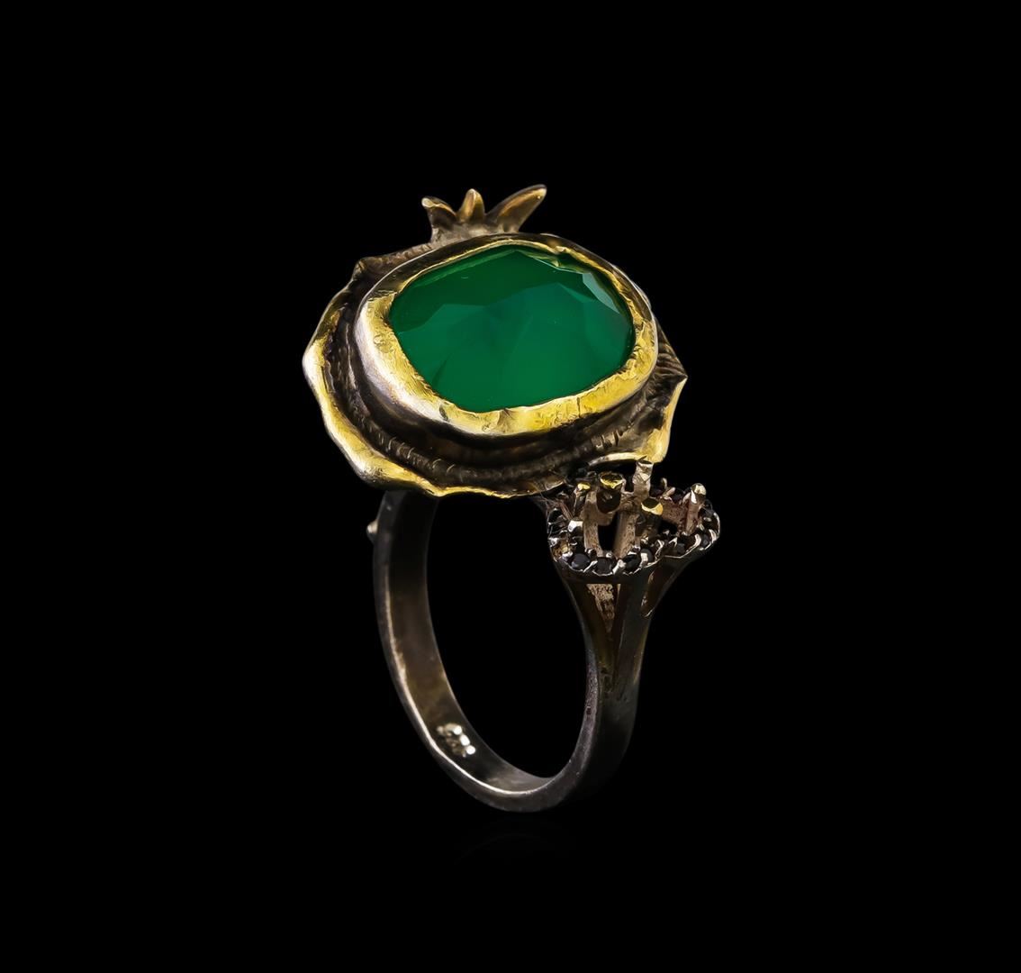 One of a kind high fashion sterling silver Ring weighing 8.4 grams. Containing: Green Crystal, Black Crystal. This sterling silver promises a lasting shine.