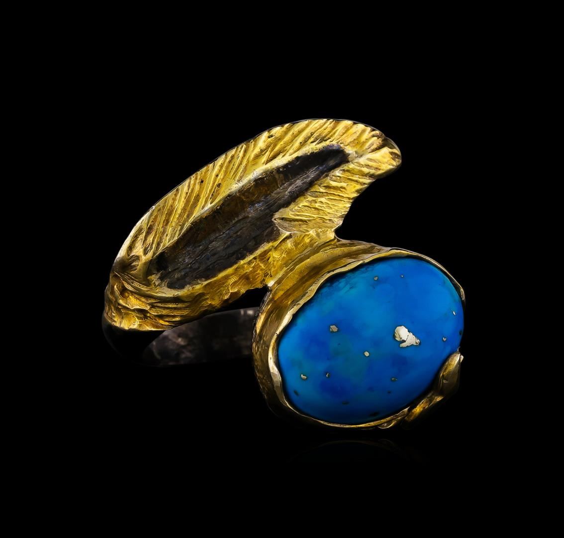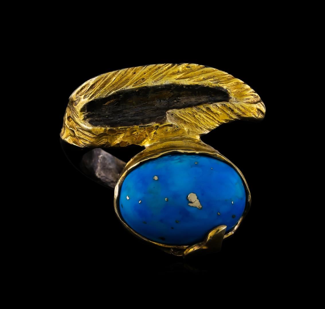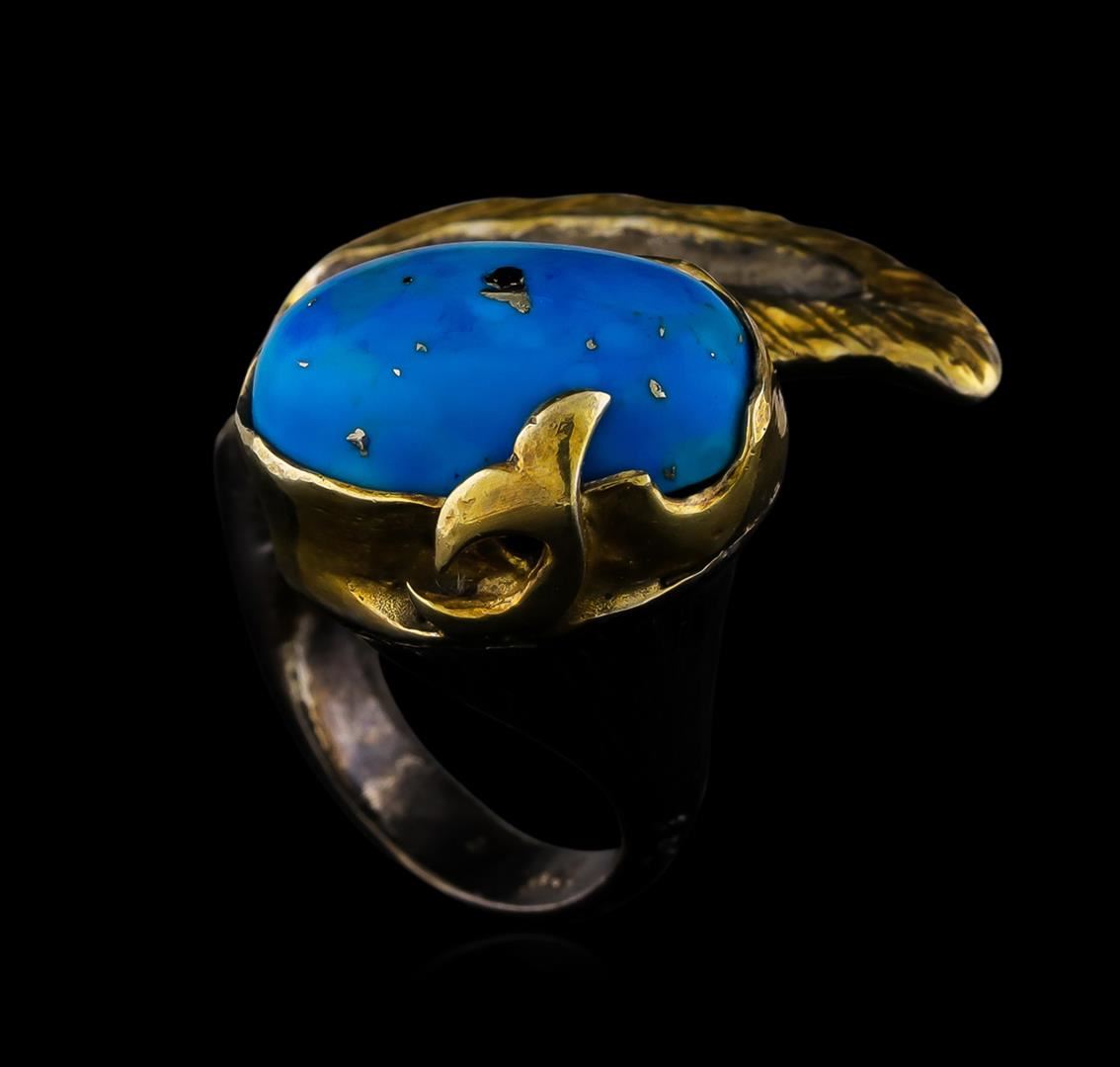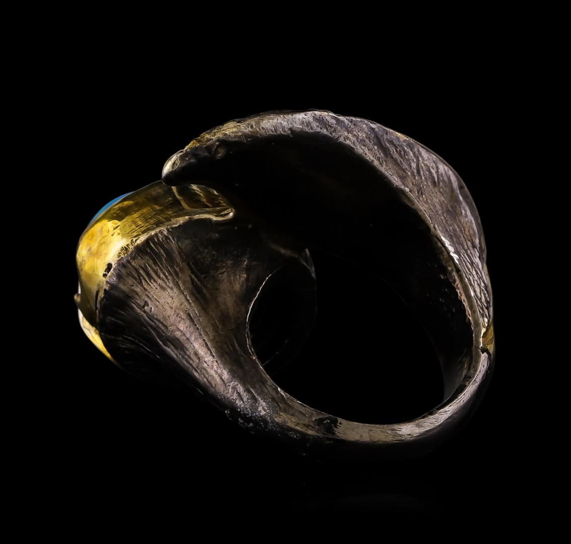 One of a kind high fashion sterling silver Ring weighing 21.8 grams. Black Antique texture. Containing: Created Turquoise. This sterling silver promises a lasting shine.