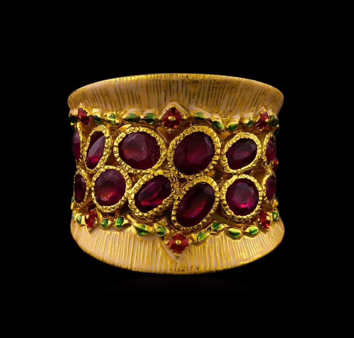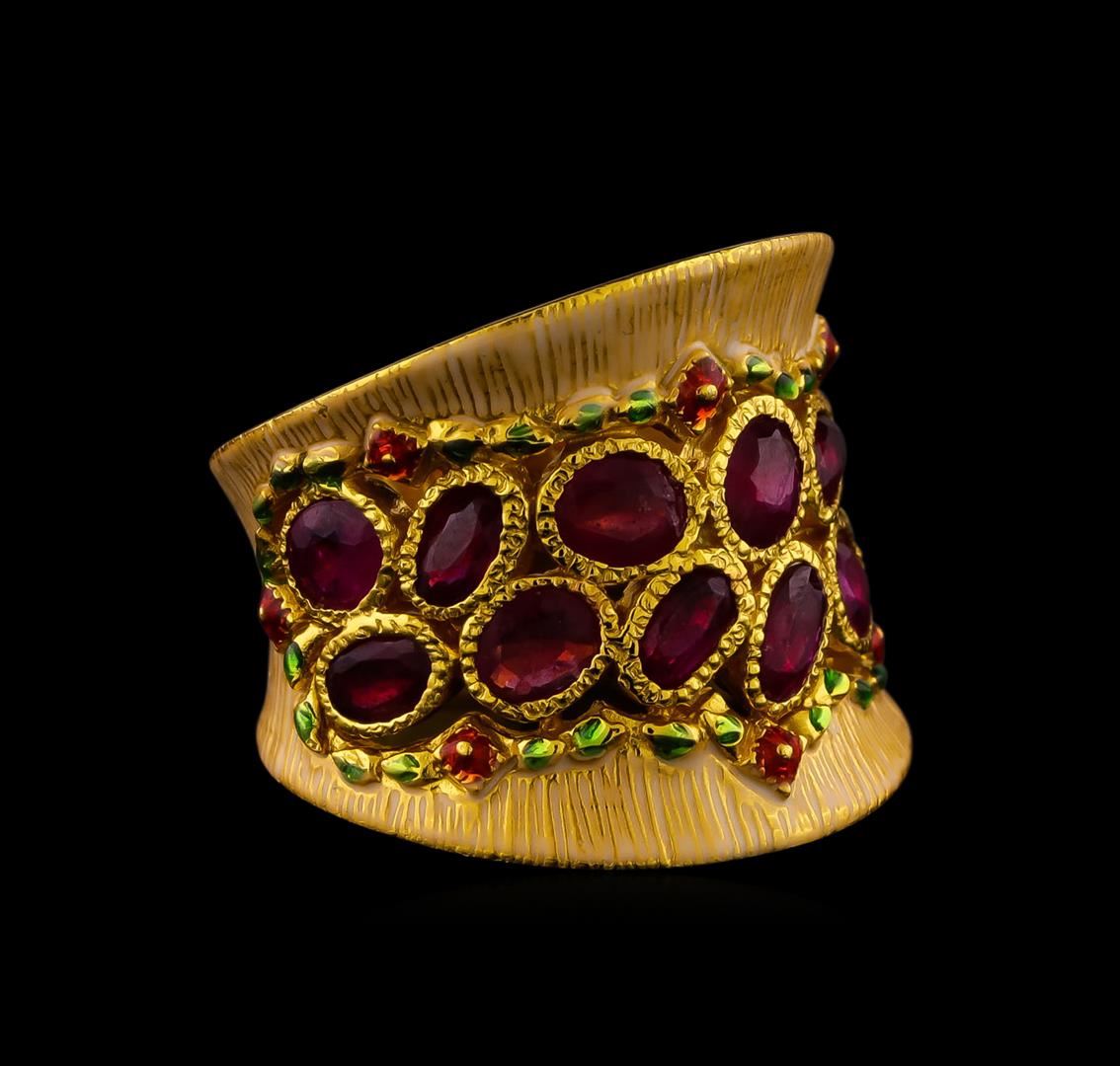 One of a kind high fashion sterling silver Ring weighing 12.7 grams. Containing: Ruby, White Enamel Inlay, Red Enamel Inlay, Green Enamel Inlay. This sterling silver promises a lasting shine.