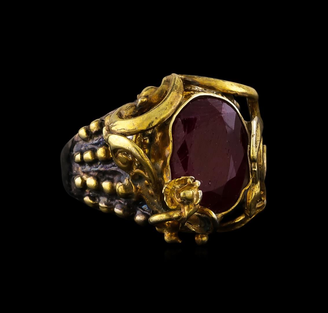 One of a kind high fashion sterling silver Ring weighing 12.6 grams. Black Antique texture. Containing: Ruby. This sterling silver promises a lasting shine.