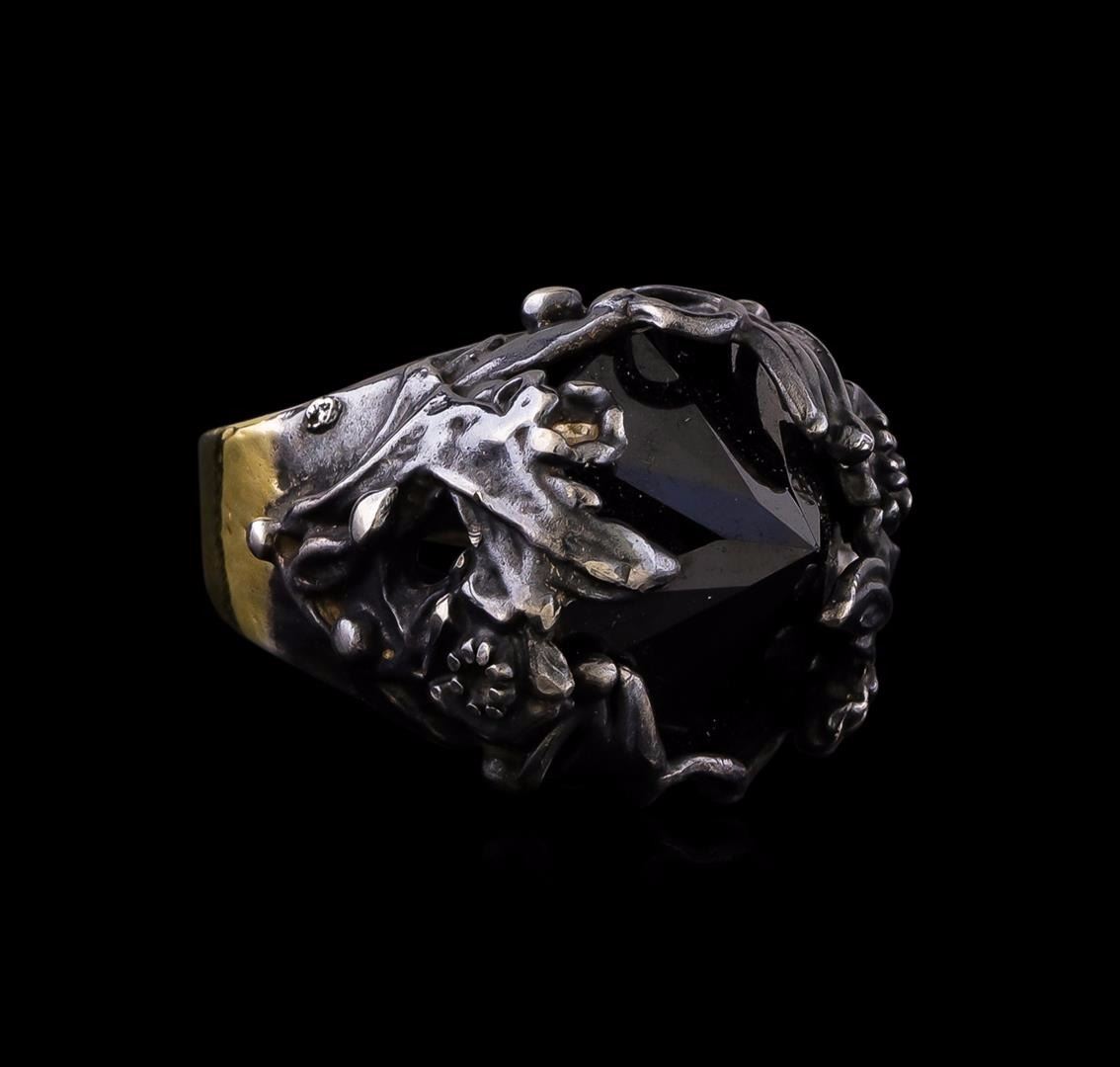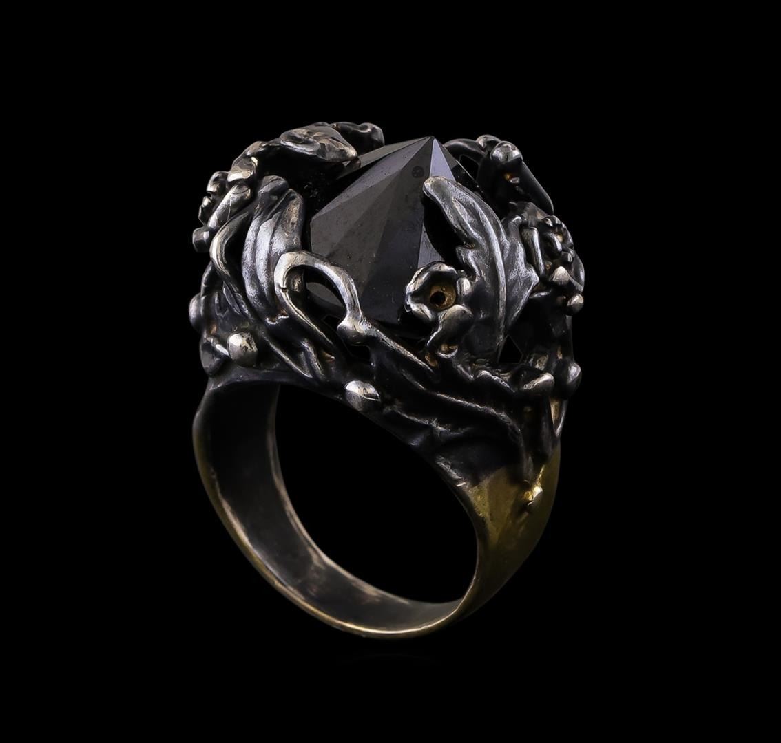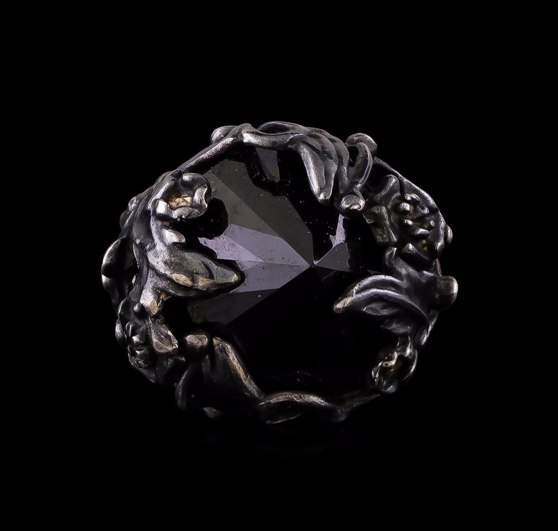 One of a kind high fashion sterling silver Ring weighing 17.5 grams. Black Antique texture. Containing: Black Crystal. This sterling silver promises a lasting shine.
