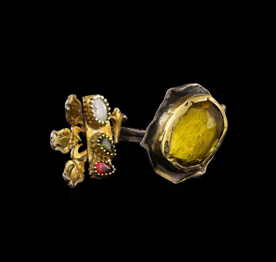 One of a kind high fashion sterling silver Ring weighing 12.7 grams. Black Antique texture. Containing: Multi-color Crystals. This sterling silver promises a lasting shine.