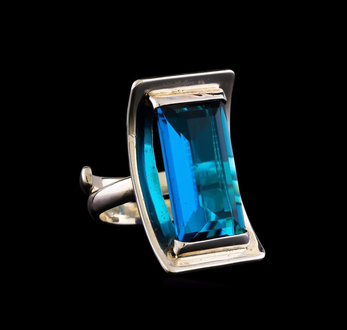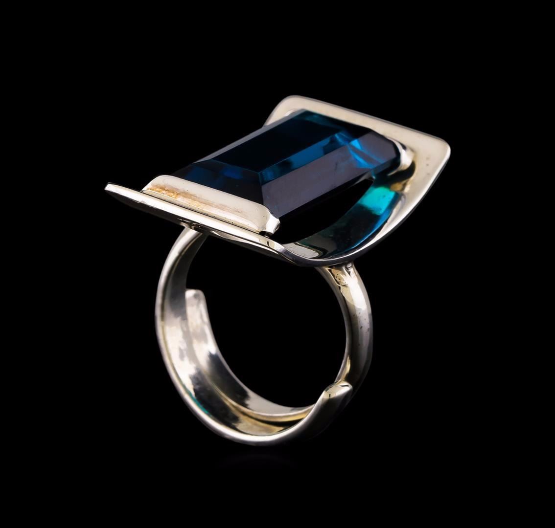 One of a kind high fashion sterling silver Ring weighing 8.8 grams. Containing: Blue Crystal. This sterling silver promises a lasting shine.
