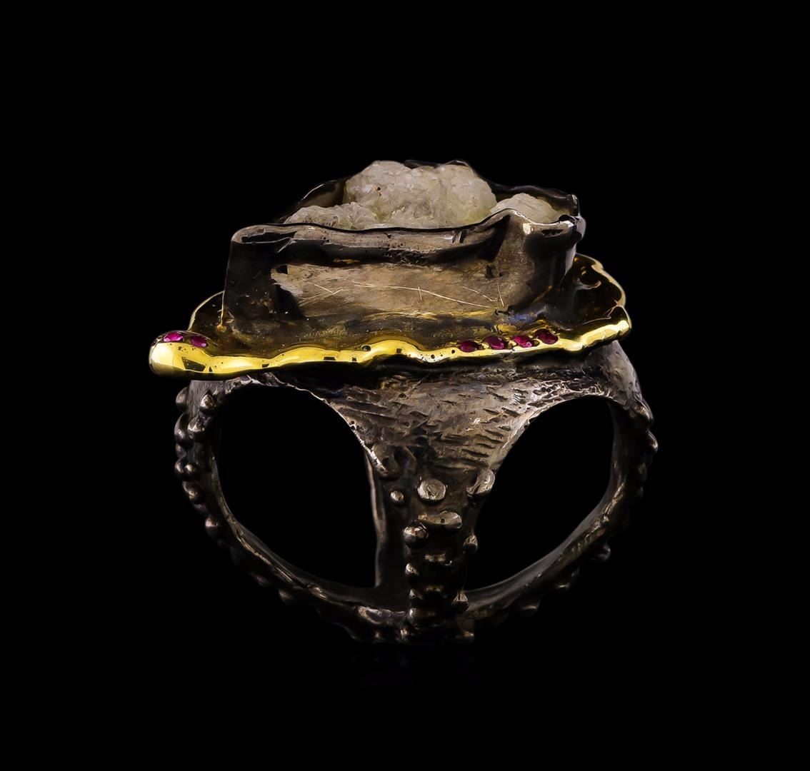 One of a kind high fashion sterling silver Ring weighing 30.8 grams. Black Antique texture. Containing: Crystal Agate, Red Crystal. This sterling silver promises a lasting shine.