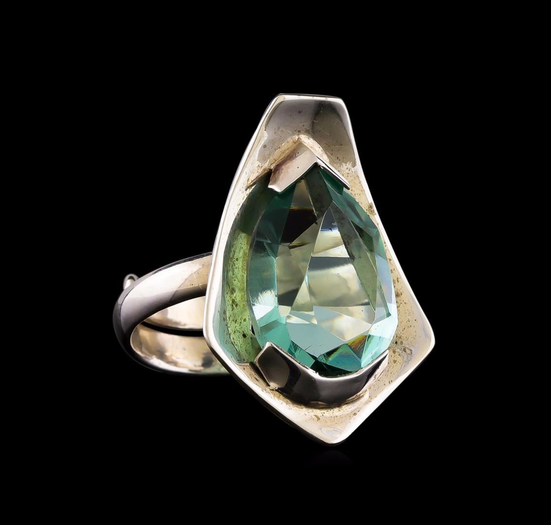 One of a kind high fashion sterling silver Ring weighing 7.4 grams. Containing: Blue Crystal. This sterling silver promises a lasting shine.