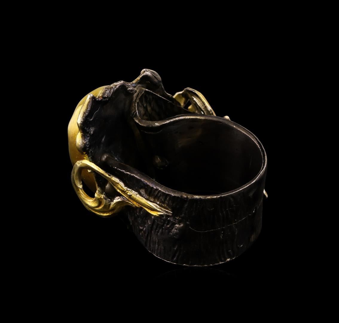 One of a kind high fashion sterling silver Ring weighing 34 grams. Black Antique texture. Containing: Ruby. This sterling silver promises a lasting shine.