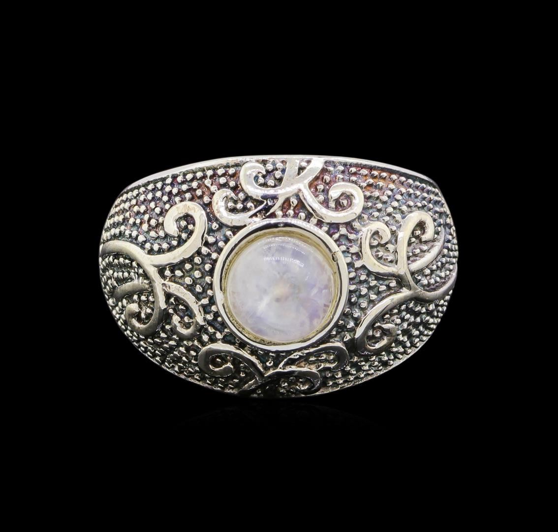 One of a kind high fashion sterling silver Ring weighing 10 grams. Containing: Moonstone. This sterling silver promises a lasting shine.