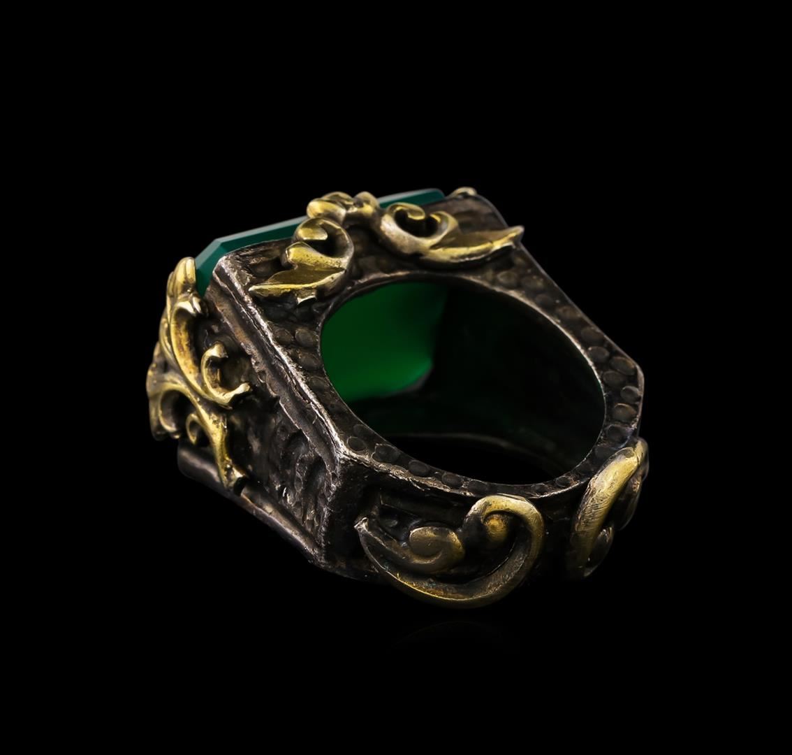 One of a kind high fashion sterling silver Ring weighing 18.7 grams. Black Antique texture. Containing: Green Crystal. This sterling silver promises a lasting shine.
