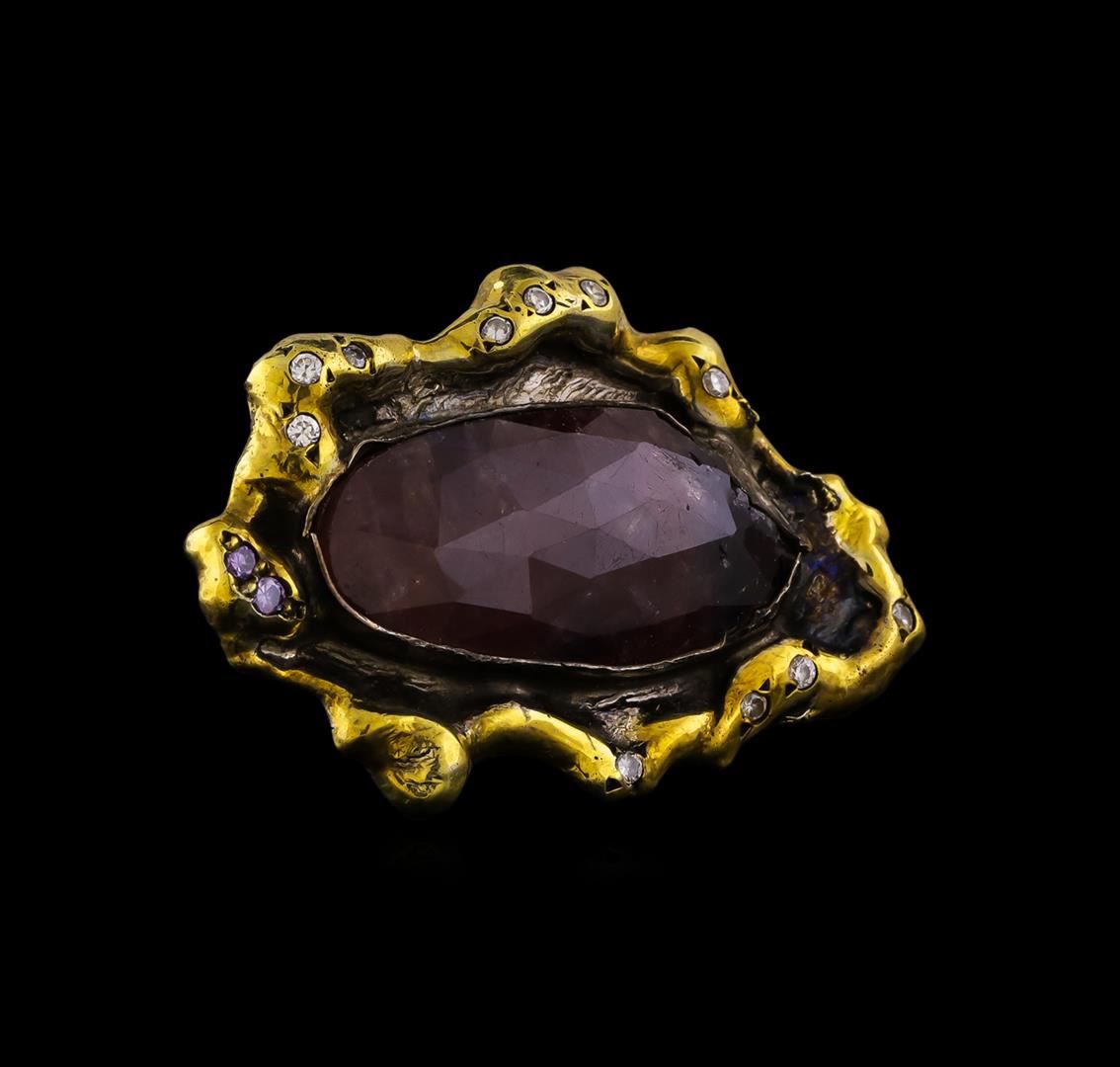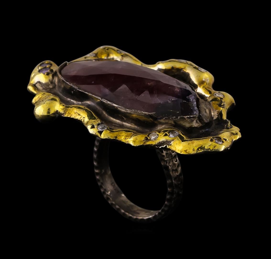 One of a kind high fashion sterling silver Ring weighing 16.5 grams. Containing: Corundum, White Crystal, Light Purple Crystal. This sterling silver promises a lasting shine.