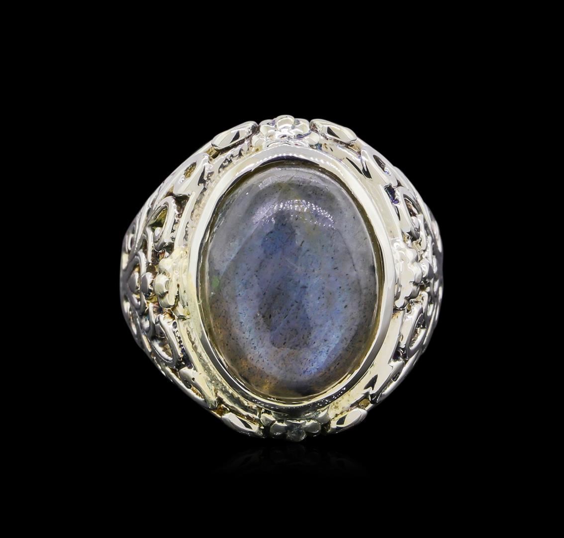 One of a kind high fashion sterling silver Ring weighing 10.6 grams. Containing: Labradorite. This sterling silver promises a lasting shine.