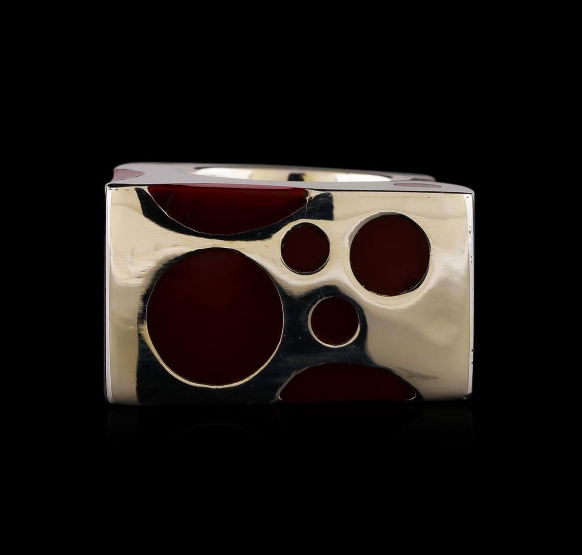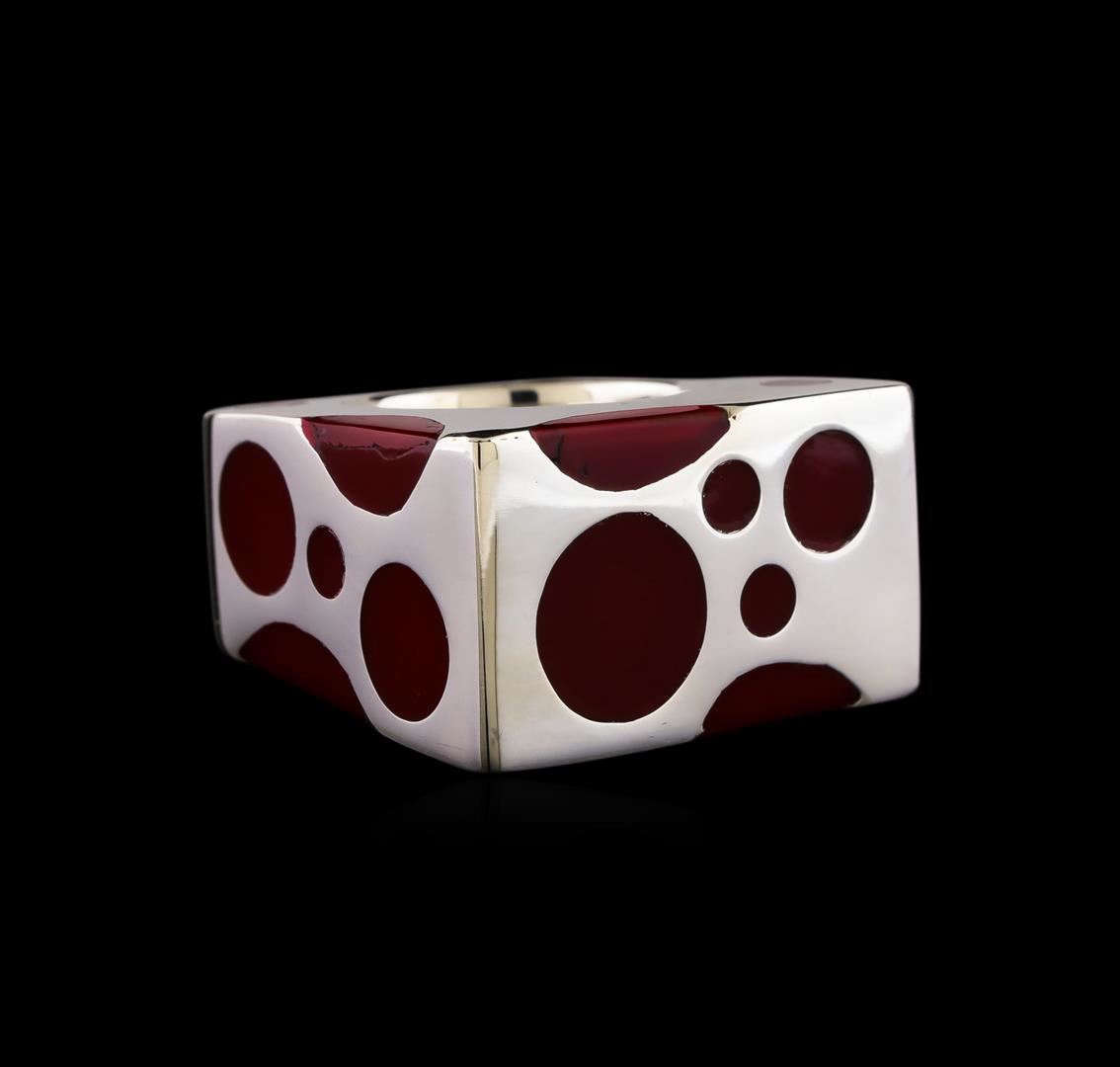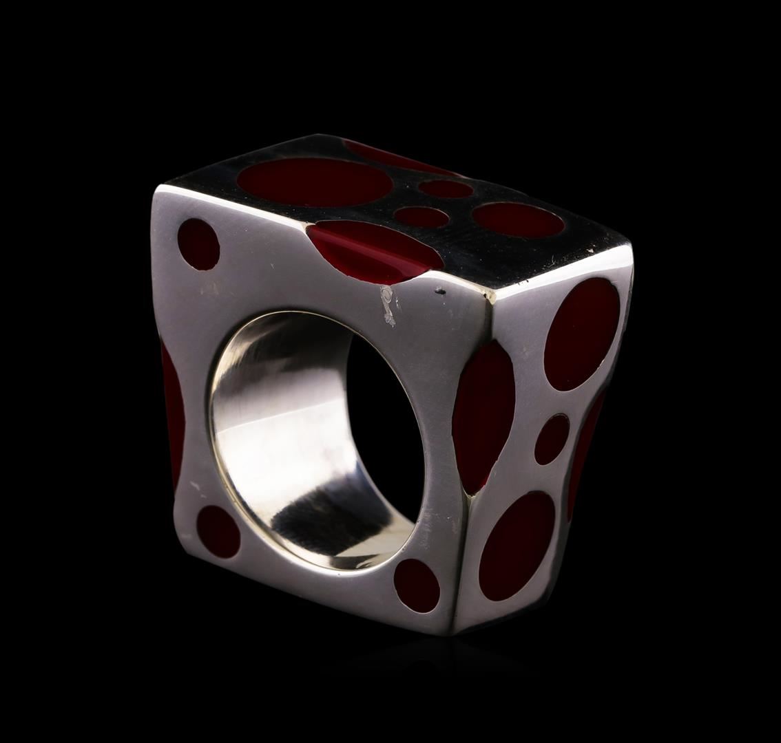 One of a kind high fashion sterling silver Ring weighing 15.8 grams. Containing: Red Enamel Inlay. This sterling silver promises a lasting shine.
