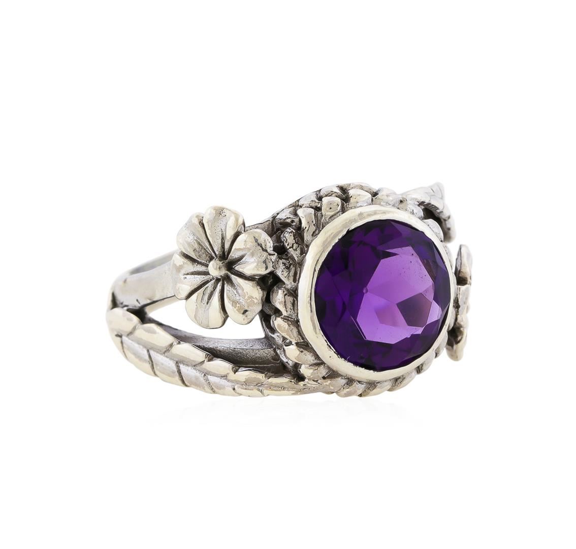 One of a kind high fashion sterling silver Ring weighing 6.8 grams. Containing: Amethyst. This sterling silver promises a lasting shine.