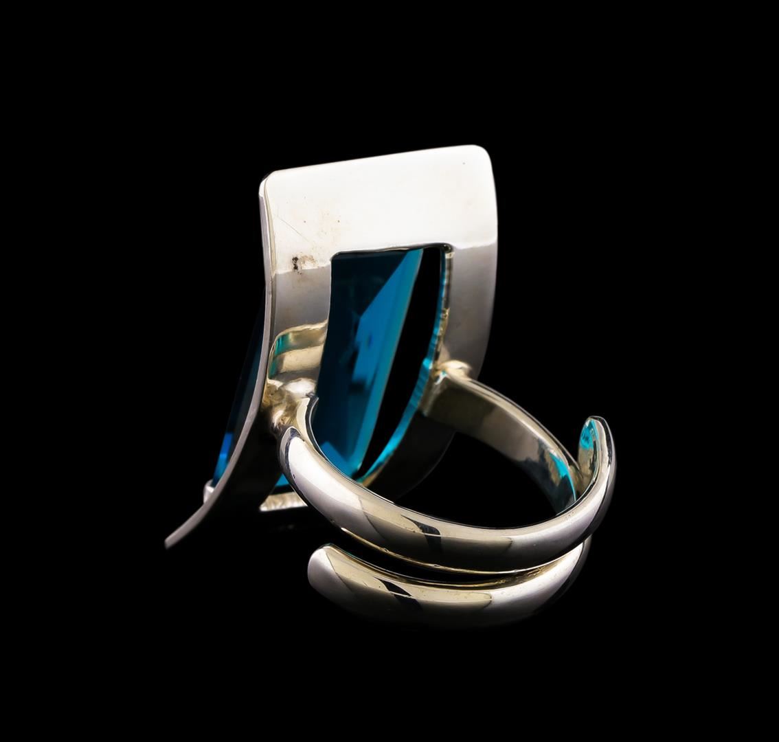 One of a kind high fashion sterling silver Ring weighing 8.8 grams. Containing: Blue Crystal. This sterling silver promises a lasting shine.