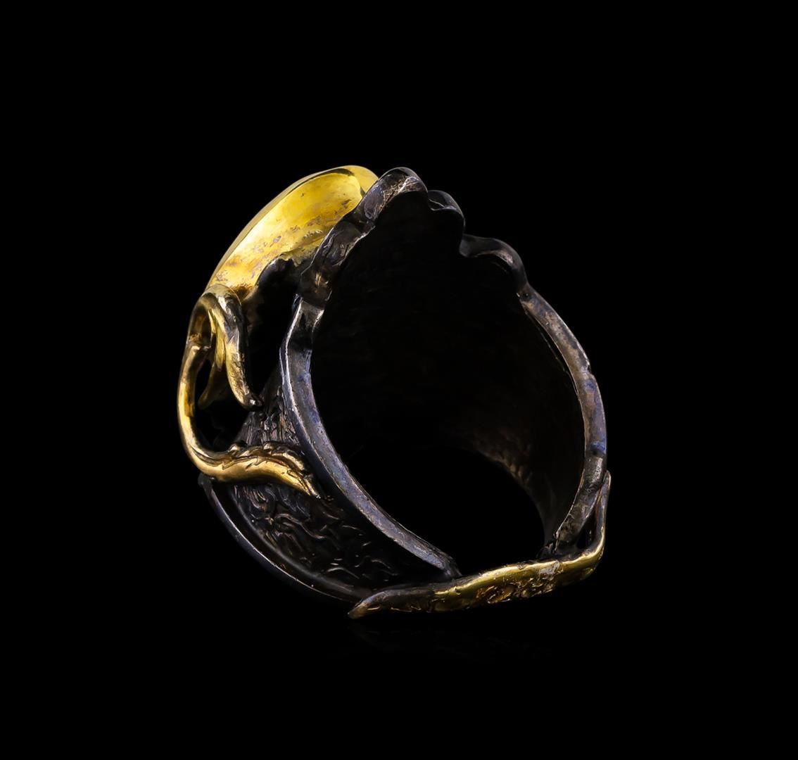 One of a kind high fashion sterling silver Ring weighing 17.7 grams. Black Antique texture. Containing: Amethyst. This sterling silver promises a lasting shine.