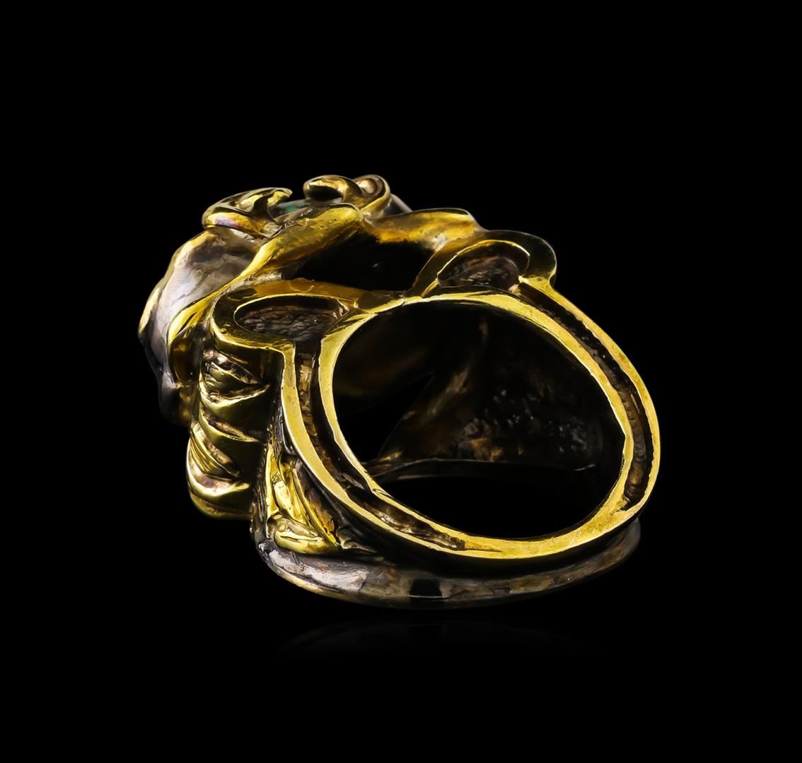 One of a kind high fashion sterling silver Ring weighing 26.3 grams. Black Antique texture. Containing: Turquoise, Black Crystal. This sterling silver promises a lasting shine.